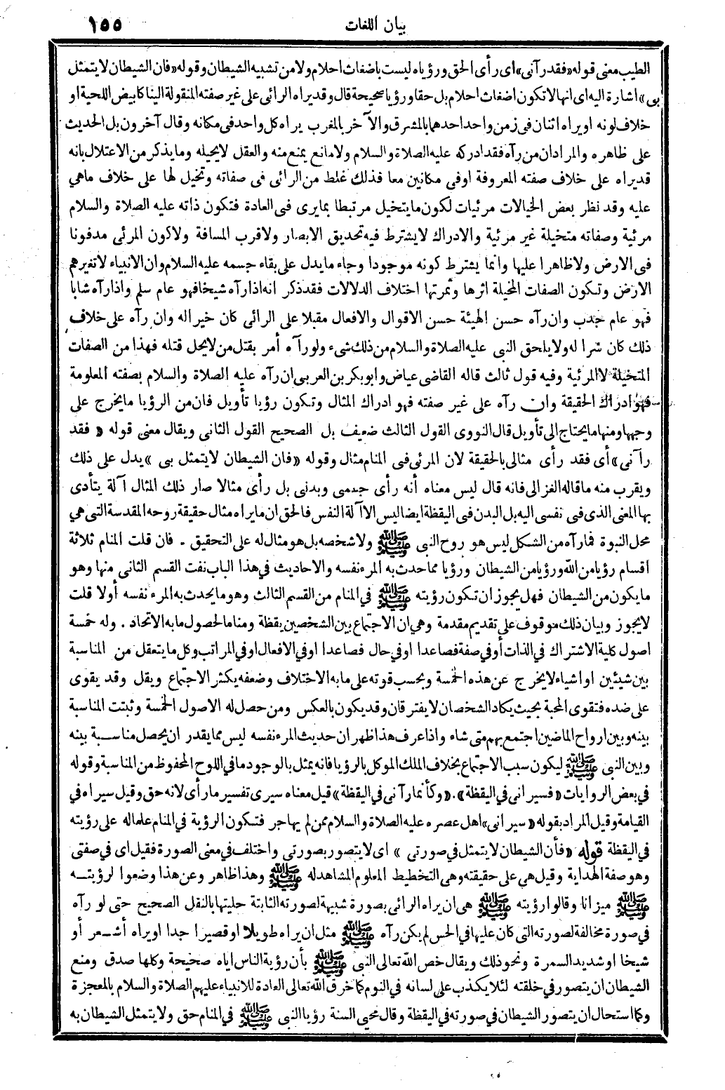 الطّيب معنى قَوْله " فقد رَآنِي " أَي رأى الْحق ورؤياه لَيست بأضغاث أَحْلَام وَلَا من تَشْبِيه الشَّيْطَان وَقَوله " فَإِن الشَّيْطَان لَا يتَمَثَّل بِي " إِشَارَة إِلَيْهِ إِلَى أَنَّهَا لَا تكون أضغاث أَحْلَام بل حَقًا ورؤيا صَحِيحَة قَالَ وَقد يرَاهُ الرَّائِي على غير صفته المنقولة إِلَيْنَا كإبياض اللِّحْيَة أَو خلاف لَونه أَو يرَاهُ اثْنَان فِي زمن وَاحِد أَحدهمَا بالمشرق وَالْآخر بالمغرب يرَاهُ كل وَاحِد فِي مَكَانَهُ وَقَالَ آخَرُونَ بل الْحَدث على ظَاهره وَالْمرَاد أَن من رَآهُ فقد أدْركهُ عَلَيْهِ الصَّلَاة وَالسَّلَام وَلَا مَانع يمْنَع مِنْهُ وَالْعقل لَا يحيله وَمَا يذكر من الاعتلال بِأَنَّهُ قد يرَاهُ على خلاف صفته الْمَعْرُوفَة أوفى مكانين مَعًا فَذَلِك غلط من الرائيفي صِفَاته وتخيل لَهَا على خلاف مَا هِيَ عَلَيْهِ وَقد نظر بعض الخيالات مرئيات والإدراك لَا يشْتَرط فِيهِ تحديق الْأَبْصَار ولأقرب الْمسَافَة وَلَا كَون المرئي مَدْفُونا فِي الأَرْض وَلَا ظَاهرا عَلَيْهَا إِنَّمَا يشْتَرط كَونه مَوْجُودا وَجَاء مَا يدل على بَقَاء جِسْمه عَلَيْهِ السَّلَام وَإِن الْأَنْبِيَاء لَا تغيرهم الأَرْض وَتَكون الصِّفَات المخيلة اثرها وثمرتها اخْتِلَاف الدلالات فقد ذكر أَنه إِذا رَآهُ شَيخا فَهُوَ عَام سلم وَإِذا رَآهُ شَابًّا فَهُوَ عَام جَدب وان رَآهُ حسن الْهَيْئَة حسن الْأَقْوَال وَالْأَفْعَال مُقبلا على الرَّائِي كَانَ خيرا لَهُ وان رَآهُ على خلاف ذَلِك كَانَ شرا لَهُ وَلَا يلْحق النَّبِي عَلَيْهِ الصَّلَاة وَالسَّلَام وَمن ذَلِك شَيْء وَلَو رَآهُ أَمر بقتل من لَا يحل قَتله فَهَذَا من الصِّفَات المتخيلة لَا المرئية وَفِيه قَول ثَالِث قَالَه لقَاضِي عِيَاض وَأَبُو بكر بن الْعَرَبِيّ أَن رَآهُ عَلَيْهِ الصَّلَاة وَالسَّلَام بِصفتِهِ الْمَعْلُومَة فَهُوَ إِدْرَاك الْحَقِيقَة وَإِن رَآهُ على غير صفته فَهُوَ إِدْرَاك الْمِثَال وَتَكون رُؤْيا تَأْوِيل فان من الرُّؤْيَا مَا يخرج على وَجههَا وَمِنْهَا مَا يحْتَاج إِلَى تَأْوِيل قَالَ النَّوَوِيّ القَوْل الثَّالِث ضَعِيف بل الصَّحِيح القَوْل الثَّانِي وَيُقَال معنى قَوْله " فقد رَآنِي " أَي فقد رأى مثالي بِالْحَقِيقَةِ لِأَن المرئي فِي الْمَنَام مِثَال قَوْله " فَإِن الشَّيْطَان لَا يتَمَثَّل بِي " يدل على ذَلِك وَيقرب مِنْهُ مَا قَالَه الْغَزالِيّ فَإِنَّهُ قَالَ لَيْسَ مَعْنَاهُ أَنه رأى جسمي وبدني بل رأى مِثَالا صَار ذَلِك الْمِثَال آلَة يتَأَدَّى بهَا الْمَعْنى الَّذِي فِي نَفسِي إِلَيْهِ بل الْبدن الْيَقَظَة أَيْضا لَيْسَ إِلَّا آلَة النَّفس فَالْحق أَن مَا يرَاهُ مِثَال حَقِيقَة روحه المقدسة الَّتِي هِيَ مَحل النُّبُوَّة فَمَا رَآهُ من الشكل لَيْسَ هُوَ روح النَّبِي صلى الله عَلَيْهِ وَسلم وَلَا شخصه بل هُوَ مِثَال لَهُ على التَّحْقِيق. فَإِن قلت الْمَنَام ثَلَاثَة أَقسَام رُؤْيا من الله ورؤيا من الشَّيْطَان ورؤيا مِمَّا حدث بِهِ الْمَرْء نَفسه وَالْأَحَادِيث فِي هَذَا الْبَاب نفت الْقسم الثَّانِي مِنْهَا وَهُوَ مَا يكون من الشَّيْطَان فَهَل يجوز أَن تكون رُؤْيَته صلى الله عَلَيْهِ وَسلم فِي الْمَنَام من الْقسم الثَّالِث وَهُوَ مَا يحدث بِهِ الْمَرْء نَفسه أَولا قلت لَا يجوز وَبَيَان ذَلِك مَوْقُوف على تَقْدِيم مُقَدّمَة وَهِي أَن الِاجْتِمَاع بَين الشخصين يقظة ومناما لحُصُول مَا بِهِ الِاتِّحَاد. وَله خَمْسَة أصُول كُلية الِاشْتِرَاك فِي الذَّات أَو فِي صفة فَصَاعِدا أَو فِي حَال فَصَاعِدا أَو فِي حَال أَو فِي حَال الْأَفْعَال وَفِي الْمَرَاتِب وكل مَا يتعقل من الْمُنَاسبَة بَين شَيْئَيْنِ أَو أَشْيَاء لَا يخرج عَن هَذِه الْخَمْسَة وبحسب قوته على مَا بِهِ الِاخْتِلَاف وَضَعفه يكثر الِاجْتِمَاع ويقل وَقد يقوى على ضِدّه فتقوى الْمحبَّة بِحَيْ