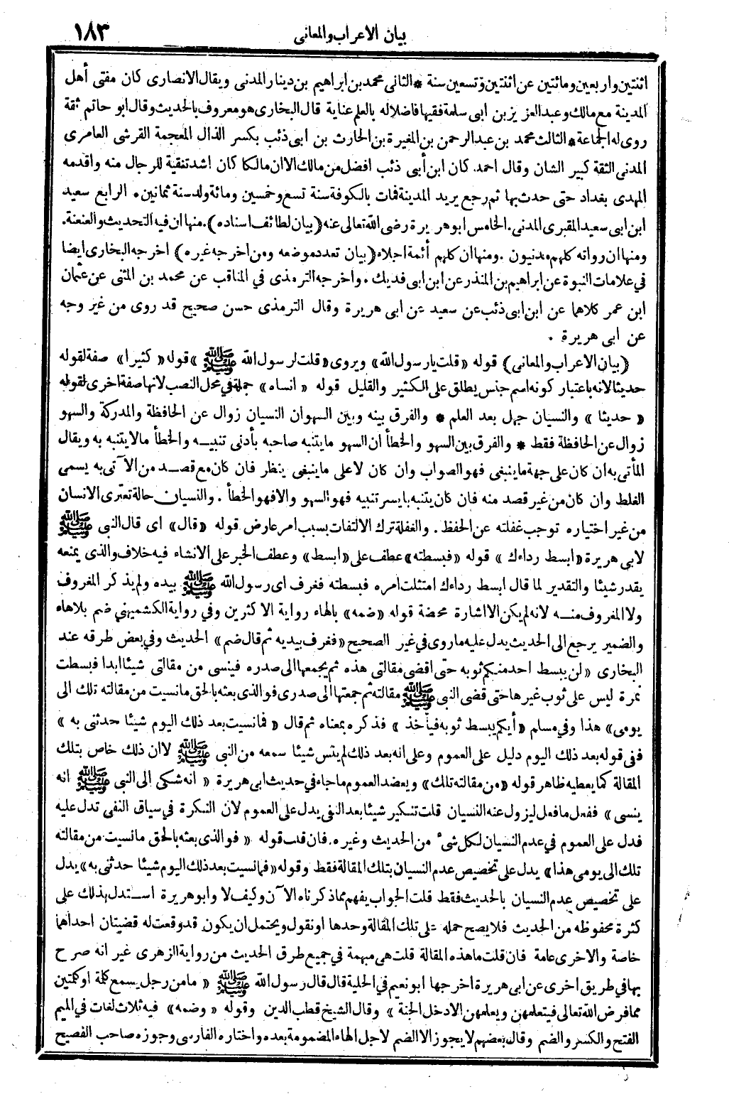 اثْنَتَيْنِ وَأَرْبَعين وَمِائَتَيْنِ، عَن اثْنَتَيْنِ وَتِسْعين سنة. الثَّانِي: مُحَمَّد بن إِبْرَاهِيم بن دِينَار الْمدنِي، وَيُقَال: الْأنْصَارِيّ، كَانَ مفتي أهل الْمَدِينَة مَعَ مَالك وَعبد الْعَزِيز بن يزِيد بن سَلمَة، فَقِيها فَاضلا لَهُ بِالْعلمِ عناية. قَالَ البُخَارِيّ: هُوَ مَعْرُوف بِالْحَدِيثِ. وَقَالَ أَبُو حَاتِم: ثِقَة، روى لَهُ الْجَمَاعَة. الثَّالِث: مُحَمَّد بن عبد الرَّحْمَن بن الْمُغيرَة بن الْحَارِث بن أبي ذِئْب، بِكَسْر الذَّال الْمُعْجَمَة، الْقرشِي العامري الْمدنِي الثِّقَة. كَبِير الشان. وَقَالَ أَحْمد: كَانَ ابْن أبي ذِئْب أفضل من مَالك إِلَّا أَن مَالِكًا كَانَ أَشد تنقية للرِّجَال مِنْهُ، وأقدمه الْمهْدي بَغْدَاد حَتَّى حدث بهَا، ثمَّ رَجَعَ يُرِيد الْمَدِينَة فَمَاتَ بِالْكُوفَةِ سنة تسع وَخمسين وَمِائَة. ولد سنة ثَمَانِينَ. الرَّابِع: سعيد بن أبي سعيد المَقْبُري الْمدنِي. الْخَامِس: أَبُو هُرَيْرَة، رَضِي الله تَعَالَى عَنهُ.