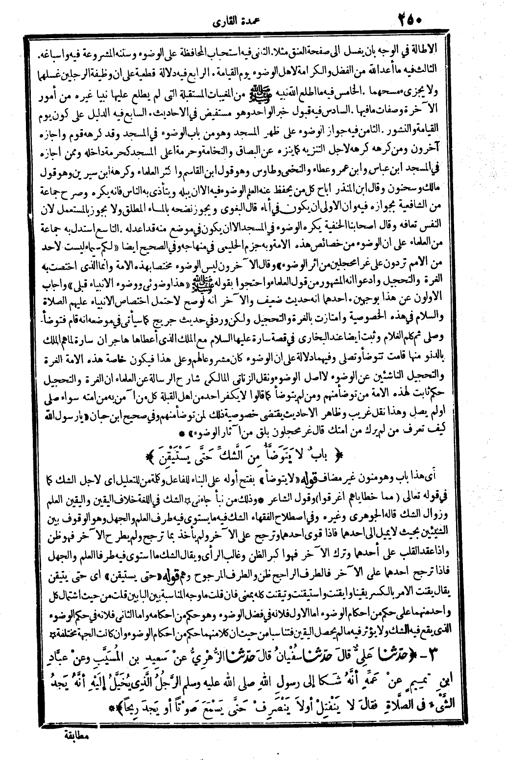 (بَاب لَا يتَوَضَّأ من الشَّك حَتَّى يستيقن)