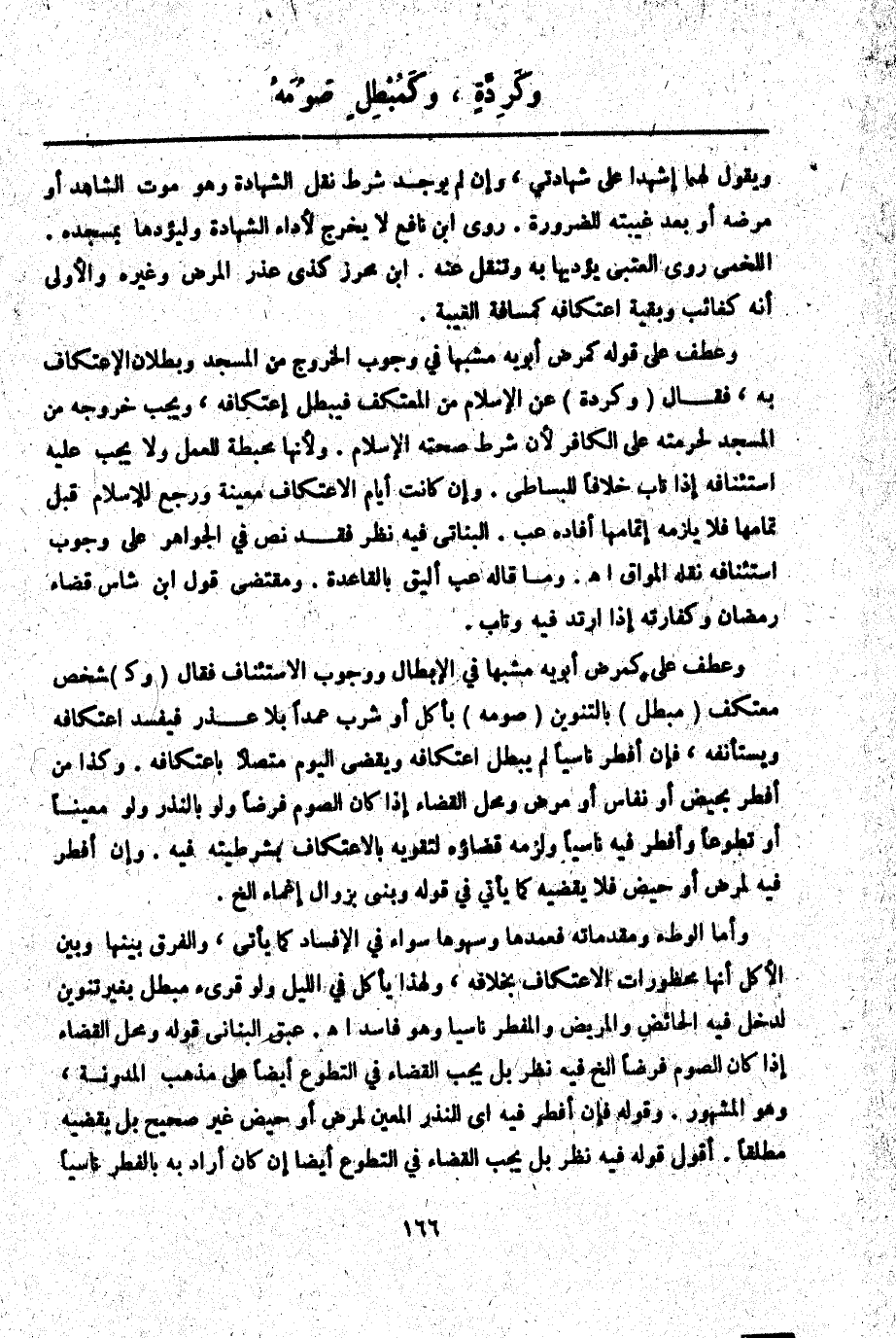 وَعَطَفَ عَلَى قَوْلِهِ كَمَرَضِ أَبَوَيْهِ مُشَبِّهًا فِي وُجُوبِ الْخُرُوجِ مِنْ الْمَسْجِدِ وَبُطْلَانِ الِاعْتِكَافِ بِهِ، فَقَالَ (وَكَرِدَّةٍ) عَنْ الْإِسْلَامِ مِنْ الْمُعْتَكِفِ فَيَبْطُلُ اعْتِكَافُهُ، وَيَجِبُ خُرُوجُهُ مِنْ الْمَسْجِدِ لِحُرْمَتِهِ عَلَى الْكَافِرِ؛ لِأَنَّ شَرْطَ صِحَّتِهِ الْإِسْلَامُ. وَلِأَنَّهَا مُحْبِطَةُ الْعَمَلِ وَلَا يَجِبُ عَلَيْهِ اسْتِئْنَافُهُ إذَا تَابَ خِلَافًا لِلْبِسَاطِيِّ. وَإِنْ كَانَتْ أَيَّامُ الِاعْتِكَافِ مُعَيَّنَةً وَرَجَعَ لِلْإِسْلَامِ قَبْلَ تَمَامِهَا فَلَا يَلْزَمُهُ إتْمَامُهَا أَفَادَهُ عب. الْبُنَانِيُّ فِيهِ نَظَرٌ فَقَدْ نَصَّ فِي الْجَوَاهِرِ عَلَى وُجُوبِ اسْتِئْنَافِهِ نَقَلَهُ الْمَوَّاقُ اهـ. وَمَا قَالَهُ عب أَلْيَقُ بِالْقَاعِدَةِ. وَمُقْتَضَى قَوْلِ ابْنِ شَاسٍ قَضَاءُ رَمَضَانَ وَكَفَّارَتُهُ إذَا ارْتَدَّ فِيهِ وَتَابَ.