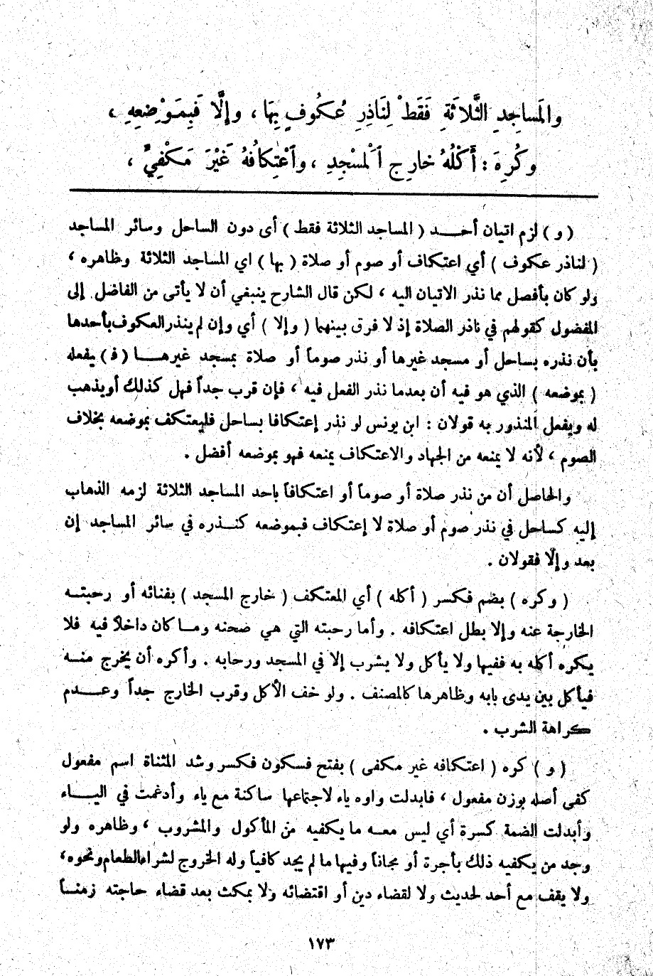 وَالْمَسَاجِدُ الثَّلَاثَةُ فَقَطْ لِنَاذِرِ عُكُوفٍ بِهَا، وَإِلَّا فَبِمَوْضِعِهِ.
