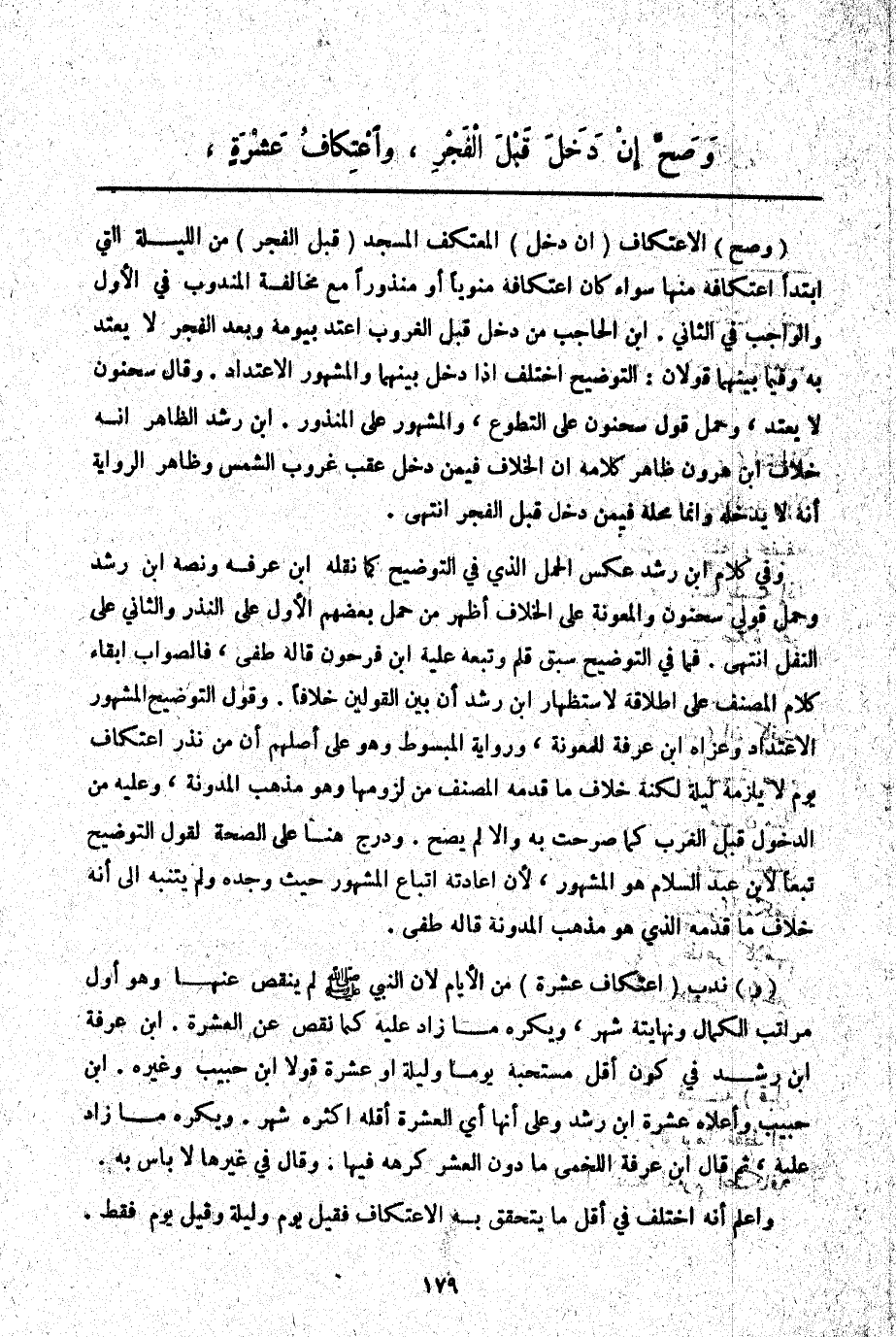 ـــــــــــــــــــــــــــــQوَصَحَّ) الِاعْتِكَافُ (إنْ دَخَلَ) الْمُعْتَكِفُ الْمَسْجِدَ (قَبْلَ الْفَجْرِ) مِنْ اللَّيْلَةِ الَّتِي ابْتَدَأَ اعْتِكَافَهُ مِنْهَا سَوَاءٌ كَانَ اعْتِكَافُهُ مَنْوِيًّا أَوْ مَنْذُورًا مَعَ مُخَالَفَةِ الْمَنْدُوبِ فِي الْأَوَّلِ وَالْوَاجِبِ فِي الثَّانِي. ابْنُ الْحَاجِبِ مَنْ دَخَلَ قَبْلَ الْغُرُوبِ اعْتَدَّ بِيَوْمِهِ وَبَعْدَ الْفَجْرِ لَا يَعْتَدُّ بِهِ وَفِيمَا بَيْنَهُمَا قَوْلَانِ: التَّوْضِيحُ اخْتَلَفَ إذَا دَخَلَ بَيْنَهُمَا وَالْمَشْهُورُ الِاعْتِدَادُ. وَقَالَ سَحْنُونٌ لَا يَعْتَدُّ، وَحَمَلَ قَوْلَهُ سَحْنُونٌ عَلَى التَّطَوُّعِ وَالْمَشْهُورُ عَلَى الْمَنْذُورِ. ابْنُ رُشْدٍ الظَّاهِرُ أَنَّهُ خِلَافُ ابْنِ هَارُونَ ظَاهِرُ كَلَامِهِ أَنَّ الْخِلَافَ فِيمَنْ دَخَلَ عَقِبَ غُرُوبِ الشَّمْسِ وَظَاهِرُ الرِّوَايَةِ أَنَّهُ لَا يَدْخُلُهُ وَإِنَّمَا مَحَلُّهُ فِيمَنْ دَخَلَ قَبْلَ الْفَجْرِ انْتَهَى.