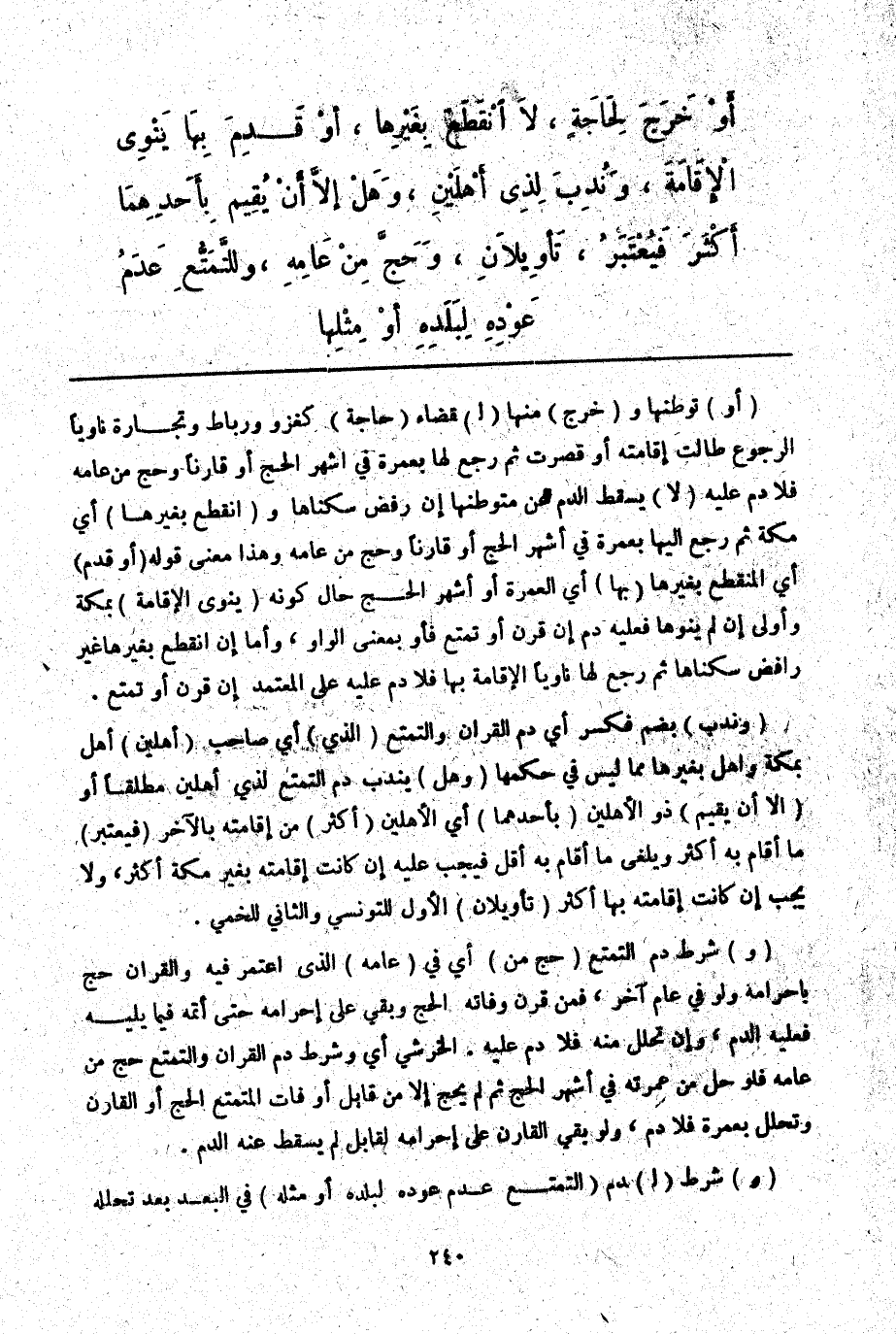 ـــــــــــــــــــــــــــــQأَوْ) تَوَطُّنُهَا وَ (خَرَجَ) مِنْهَا (لِ) قَضَاءِ (حَاجَةٍ) كَغَزْوٍ وَرِبَاطٍ وَتِجَارَةٍ نَاوِيًا الرُّجُوعَ طَالَتْ إقَامَتُهُ أَوْ قَصُرَتْ ثُمَّ رَجَعَ لَهَا بِعُمْرَةٍ فِي أَشْهُرِ الْحَجِّ أَوْ قَارِنًا وَحَجَّ مِنْ عَامِهِ فَلَا دَمَ عَلَيْهِ (لَا) يَسْقُطُ الدَّمُ عَنْ مُتَوَطِّنِهَا إنْ رَفَضَ سُكْنَاهَا وَ (انْقَطَعَ بِغَيْرِهَا) أَيْ: مَكَّةَ ثُمَّ رَجَعَ إلَيْهَا بِعُمْرَةٍ فِي أَشْهُرِ الْحَجِّ أَوْ قَارِنًا وَحَجَّ مِنْ عَامِهِ وَهَذَا مَعْنَى قَوْلِهِ (أَوْ قَدَّمَ) أَيْ: الْمُنْقَطِعُ بِغَيْرِهَا (بِهَا) أَيْ: الْعُمْرَةِ أَوْ أَشْهُرُ الْحَجِّ حَالَ كَوْنِهِ (يَنْوِي الْإِقَامَةَ) بِمَكَّةَ وَأَوْلَى إنْ لَمْ يَنْوِهَا فَعَلَيْهِ دَمٌ إنْ قَرَنَ أَوْ تَمَتَّعَ فَأَوْ بِمَعْنَى الْوَاوِ، وَأَمَّا إنْ انْقَطَعَ بِغَيْرِهَا غَيْرُ رَافِضٍ سُكْنَاهَا ثُمَّ رَجَعَ لَهَا نَاوِيًا الْإِقَامَةَ بِهَا فَلَا دَمَ عَلَيْهِ عَلَى الْمُعْتَمَدِ إنْ قَرَنَ أَوْ تَمَتَّعَ.