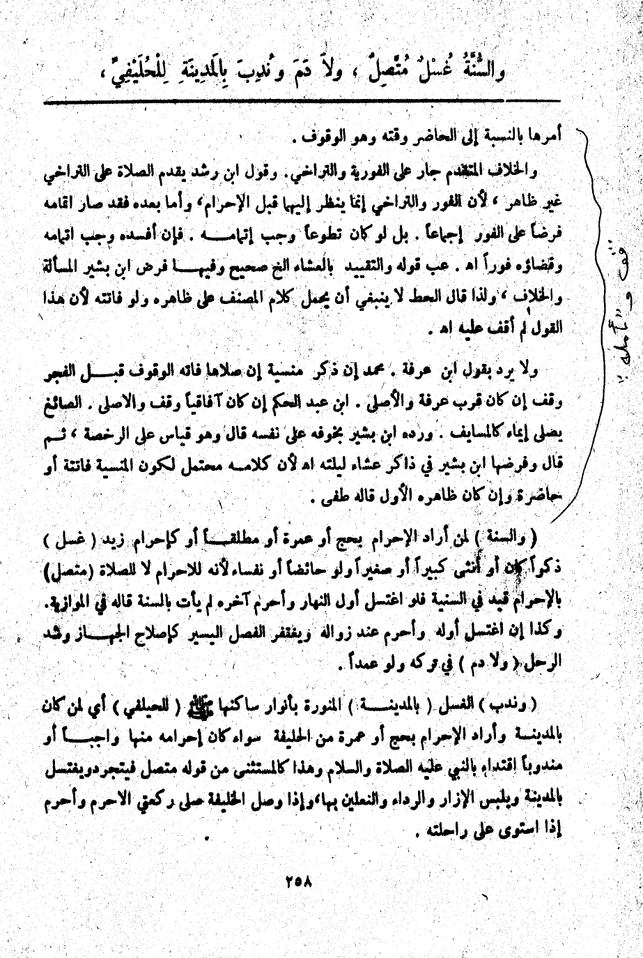 (وَالسُّنَّةُ) لِمَنْ أَرَادَ الْإِحْرَامَ بِحَجٍّ أَوْ عُمْرَةٍ أَوْ مُطْلَقًا أَوْ كَإِحْرَامِ زَيْدٍ (غُسْلٌ) ذَكَرًا كَانَ أَوْ أُنْثَى كَبِيرًا أَوْ صَغِيرًا وَلَوْ حَائِضًا أَوْ نُفَسَاءَ؛ لِأَنَّهُ لِلْإِحْرَامِ لَا لِلصَّلَاةِ (مُتَّصِلٌ) بِالْإِحْرَامِ قُيِّدَ فِي السُّنِّيَّةِ فَلَوْ اغْتَسَلَ أَوَّلَ النَّهَارِ وَأَحْرَمَ آخِرَهُ لَمْ يَأْتِ بِالسُّنَّةِ قَالَهُ فِي الْمَوَّازِيَّةِ. وَكَذَا إنْ اغْتَسَلَ أَوَّلَهُ وَأَحْرَمَ عِنْدَ زَوَالِهِ وَيُغْتَفَرُ الْفَصْلُ الْيَسِيرُ كَإِصْلَاحِ الْجِهَازِ وَشَدِّ الرَّحْلِ (وَلَا دَمَ) فِي تَرْكِهِ وَلَوْ عَمْدًا. (وَنُدِبَ) الْغُسْلُ (بِالْمَدِينَةِ) الْمُنَوَّرَةِ بِأَنْوَارِ سَاكِنِهَا - صَلَّى اللَّهُ عَلَيْهِ وَسَلَّمَ - (لِلْحُلَيْفِيِّ) أَيْ لِمَنْ كَانَ بِالْمَدِينَةِ وَأَرَادَ الْإِحْرَامَ بِحَجٍّ أَوْ عُمْرَةٍ مِنْ الْحُلَيْفَةِ سَوَاءٌ كَانَ إحْرَامُهُ مِنْهَا وَاجِبًا أَوْ مَنْدُوبًا اقْتِدَاءً بِالنَّبِيِّ - عَلَيْهِ الصَّلَاةُ وَالسَّلَامُ - وَهَذَا كَالْمُسْتَثْنَى مِنْ قَوْلِهِ مُتَّصِلٌ فَيَتَجَرَّدُ وَيَغْتَسِلُ بِالْمَدِينَةِ وَيَلْبَسُ الْإِزَارَ وَالرِّدَاءَ وَالنَّعْلَيْنِ بِهَا، وَإِذَا وَصَلَ الْحُلَيْفَةَ صَلَّى رَكْعَتَيْ الْإِحْرَامِ وَأَحْرَمَ إذَا اسْتَوَى عَلَى رَاحِلَتِهِ.