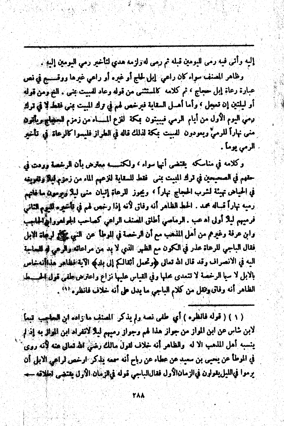 وَكَلَامُهُ فِي مَنَاسِكِهِ يَقْتَضِي أَنَّهُمَا سَوَاءٌ، وَلَكِنَّهُ مُعْتَرِضٌ بِأَنَّ الرُّخْصَةَ وَرَدَتْ فِي حَقِّهِمْ فِي الصَّحِيحَيْنِ فِي تَرْكِ الْمَبِيتِ بِمِنًى فَقَطْ لِلسِّقَايَةِ لِنَزْعِهِمْ الْمَاءَ مِنْ زَمْزَمَ لَيْلًا وَتَفْرِيغُهُ فِي الْحِيَاضِ تَهْيِئَةً لِشُرْبِ الْحُجَّاجِ نَهَارًا وَيَجُوزُ لِلرُّعَاةِ إتْيَانُ مِنًى لَيْلًا وَيَرْمُونَ مَا فَاتَهُمْ رَمْيُهُ نَهَارًا قَالَهُ مُحَمَّدٌ. الْحَطّ الظَّاهِرُ أَنَّهُ وِفَاقٌ؛ لِأَنَّهُ إذَا رَخَّصَ لَهُمْ فِي تَأْخِيرِهِ لِلْيَوْمِ الثَّانِي فَرَمْيُهُمْ لَيْلًا أَوْلَى اهـ عب. الرَّمَاصِيُّ أَطْلَقَ الْمُصَنِّفُ الرَّاعِيَ كَصَاحِبِ الْجَوَاهِرِ وَابْنِ الْحَاجِبِ وَابْنُ عَرَفَةَ وَغَيْرُهُمْ مِنْ أَهْلِ الْمَذْهَبِ مَعَ أَنَّ الرُّخْصَةَ فِي الْمُوَطَّإِ عَنْ النَّبِيِّ - صَلَّى اللَّهُ عَلَيْهِ وَسَلَّمَ - لِرُعَاةِ الْإِبِلِ فَقَالَ الْبَاجِيَّ لِلرُّعَاةِ عُذِرَ فِي الْكَوْنِ مَعَ الظُّهْرِ الَّذِي لَا بُدَّ مِنْ مُرَاعَاتِهِ وَالرَّعْيِ لَهُ لِلْحَاجَةِ إلَيْهِ فِي الِانْصِرَافِ وَقَدْ قَالَ اللَّهُ تَعَالَى {وَتَحْمِلُ أَثْقَالَكُمْ إِلَى بَلَدٍ} [النحل: 7] الْآيَةَ فَظَاهِرُ هَذَا أَنَّهُ خَاصٌّ بِالْإِبِلِ لَا سِيَّمَا الرُّخْصَةُ لَا تَتَعَدَّى مَحَلَّهَا وَفِي الْقِيَاسِ عَلَيْهَا نِزَاعٌ وَاعْتَرَضَ طفي قَوْلَ الْحَطّ الظَّاهِرُ أَنَّهُ وِفَاقٌ وَنَقَلَ مِنْ كَلَامِ الْبَاجِيَّ مَا يَدُلُّ عَلَى أَنَّهُ خِلَافٌ فَانْظُرْهُ.