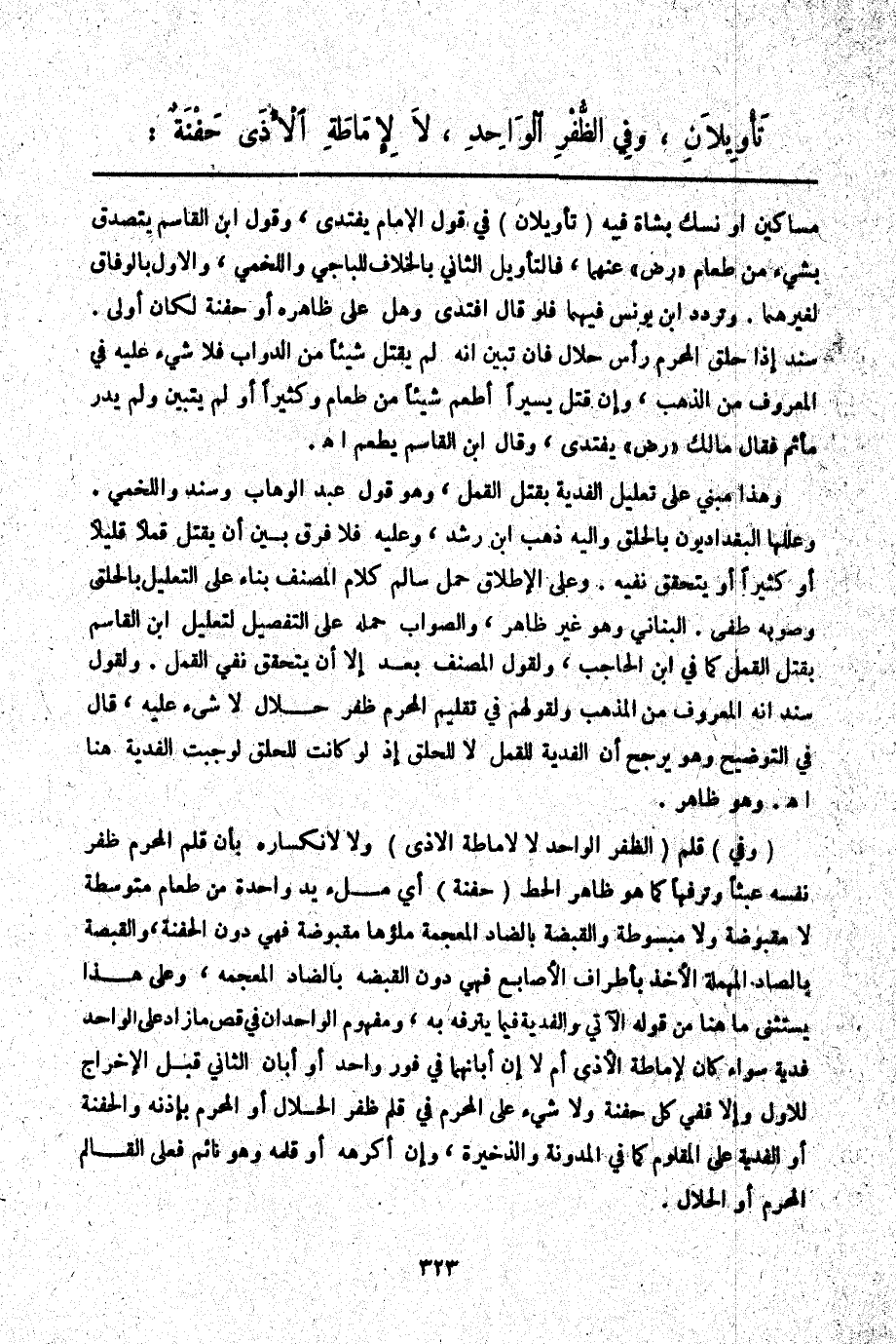 تَأْوِيلَانِ، فِي الظُّفْرِ الْوَاحِدِ، لَا لِإِمَاطَةِ الْأَذَى حَفْنَةٌ: