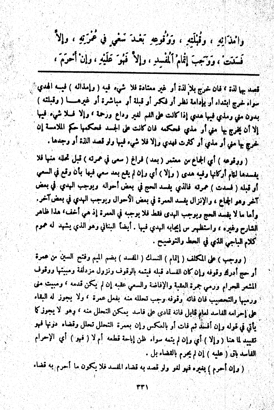 (وَوَجَبَ) عَلَى الْمُكَلَّفِ (إتْمَامُ) النُّسُكِ (الْمُفْسَدِ) بِضَمِّ الْمِيمِ وَفَتْحِ السِّينِ مِنْ عُمْرَةٍ أَوْ حَجٍّ أَدْرَكَ وُقُوفَهُ وَإِنْ كَانَ الْفَسَادُ قَبْلَهُ فَيُتِمُّهُ بِالْوُقُوفِ وَنُزُولِ مُزْدَلِفَةَ وَمَبِيتِهَا وَوُقُوفِ الْمَشْعَرِ الْحَرَامِ وَرَمْيِ جَمْرَةِ الْعَقَبَةِ وَالْإِفَاضَةِ وَالسَّعْيِ عَقِبَهُ إنْ لَمْ يَكُنْ قَدَّمَهُ، وَمَبِيتِ مِنًى وَرَمْيِهَا وَالتَّحْصِيبِ فَإِنْ فَاتَهُ وُقُوفُهُ وَجَبَ تَحَلُّلُهُ مِنْهُ بِفِعْلِ عُمْرَةٍ، وَلَا يَجُوزُ لَهُ الْبَقَاءُ عَلَى إحْرَامِهِ الْفَاسِدِ لِعَامٍ قَابِلٍ فَإِنَّهُ تَمَادَى عَلَى فَاسِدٍ يُمْكِنُ التَّحَلُّلُ مِنْهُ، وَهُوَ لَا يَجُوزُ كَمَا يَأْتِي فِي قَوْلِهِ وَإِنْ أَفْسَدَ ثُمَّ فَاتَ أَوْ بِالْعَكْسِ وَإِنْ بِعُمْرَةِ التَّحَلُّلِ تَحَلَّلَ وَقَضَاهُ دُونَهَا فَهُوَ تَقْيِيدٌ لِمَا هُنَا (وَإِلَّا) أَيْ: وَإِنْ لَمْ يُتِمَّهُ سَوَاءٌ ظَنَّ إبَاحَةَ قَطْعِهِ أَمْ لَا (فَهُوَ) أَيْ: الْإِحْرَامُ الْفَاسِدُ بَاقٍ (عَلَيْهِ) إنْ لَمْ يُحْرِمْ بِالْقَضَاءِ بَلْ.