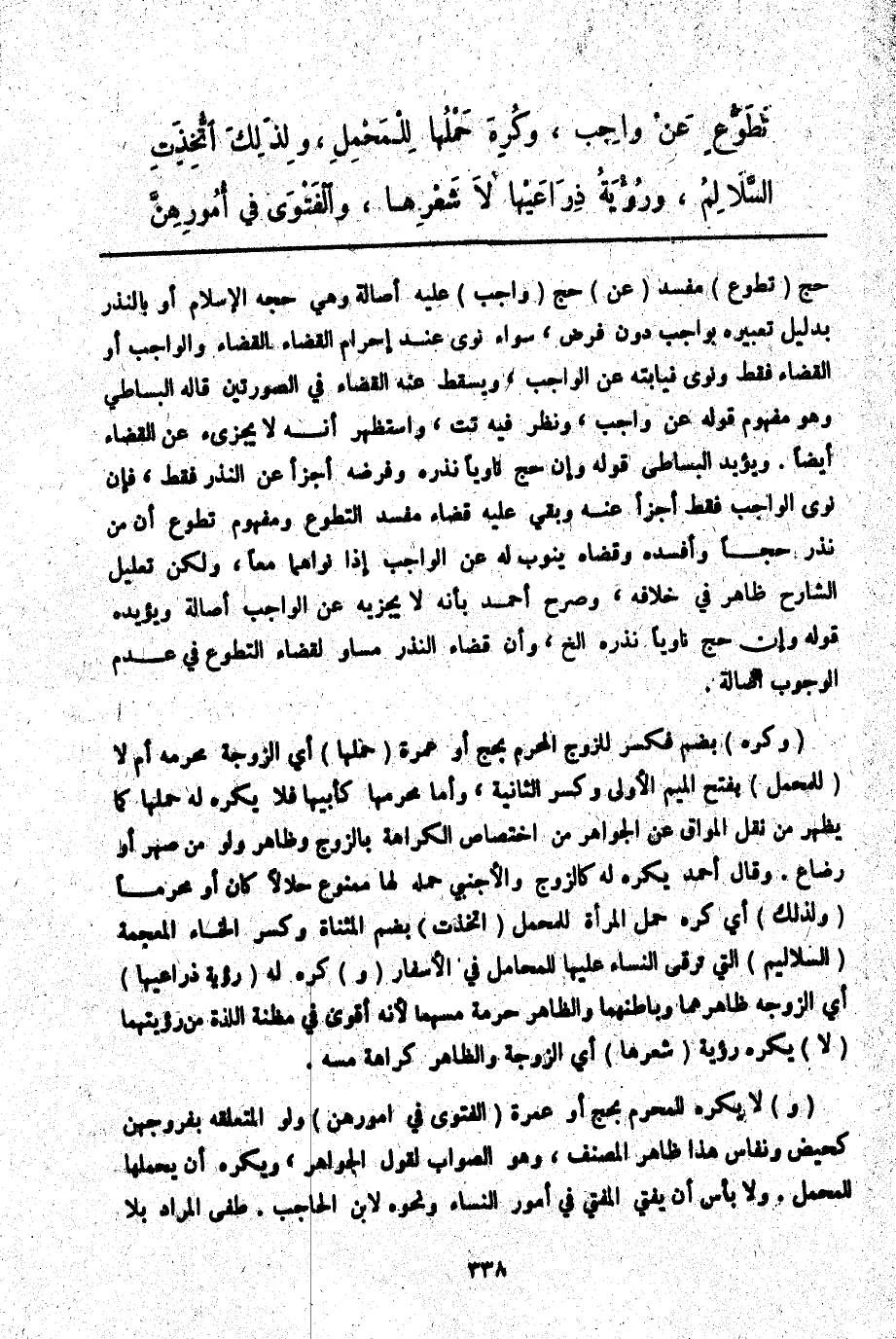 تَطَوُّعٍ عَنْ وَاجِبٍ، وَكُرِهَ حَمْلُهَا لِلْمَحْمَلِ، وَلِذَلِكَ اُتُّخِذَتْ السَّلَالِمُ، وَرُؤْيَةُ ذِرَاعَيْهَا لَا شَعْرِهَا، وَالْفَتْوَى فِي أُمُورِهِنَّ