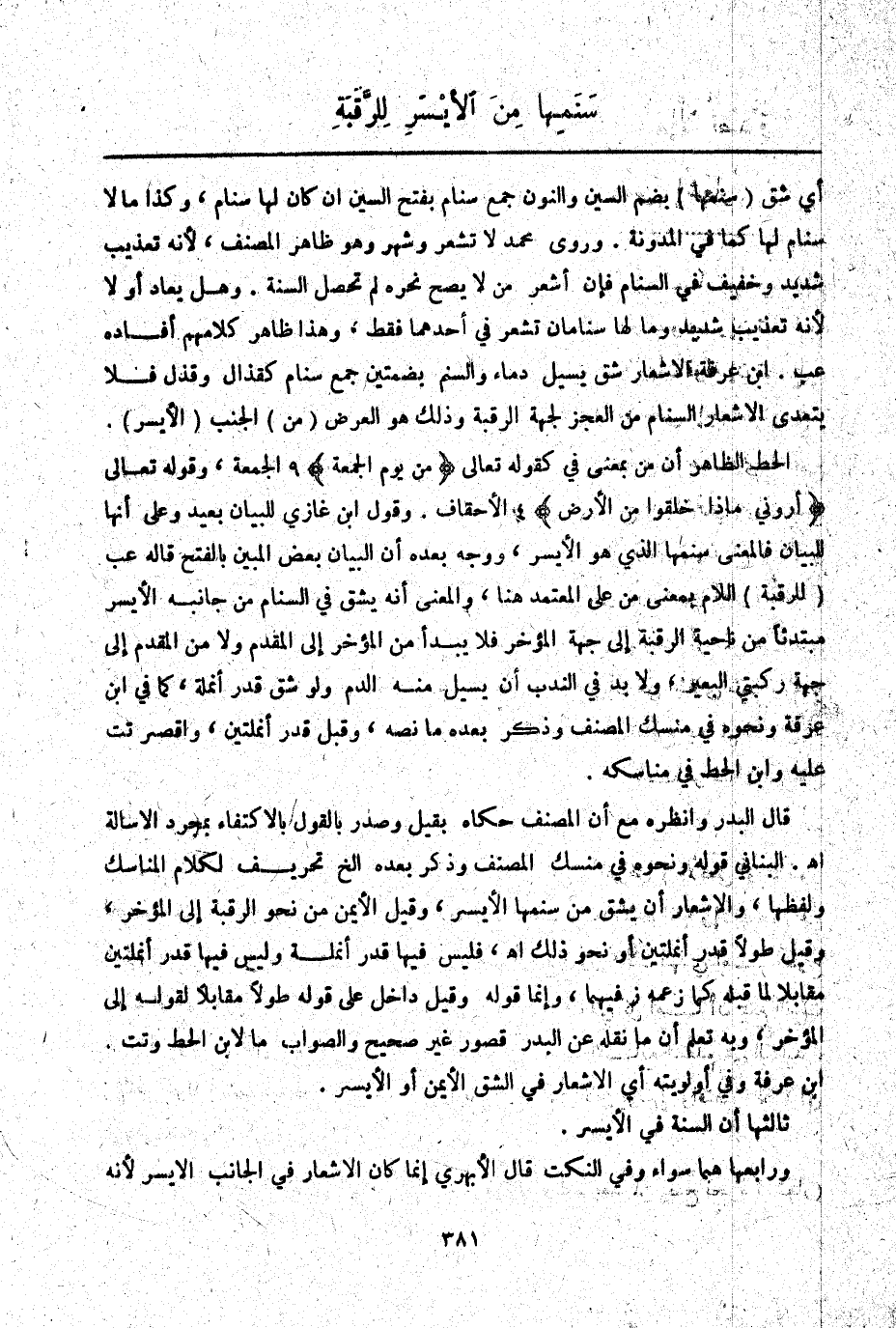 سَنَمِهَا مِنْ الْأَيْسَرِ لِلرَّقَبَةِ.