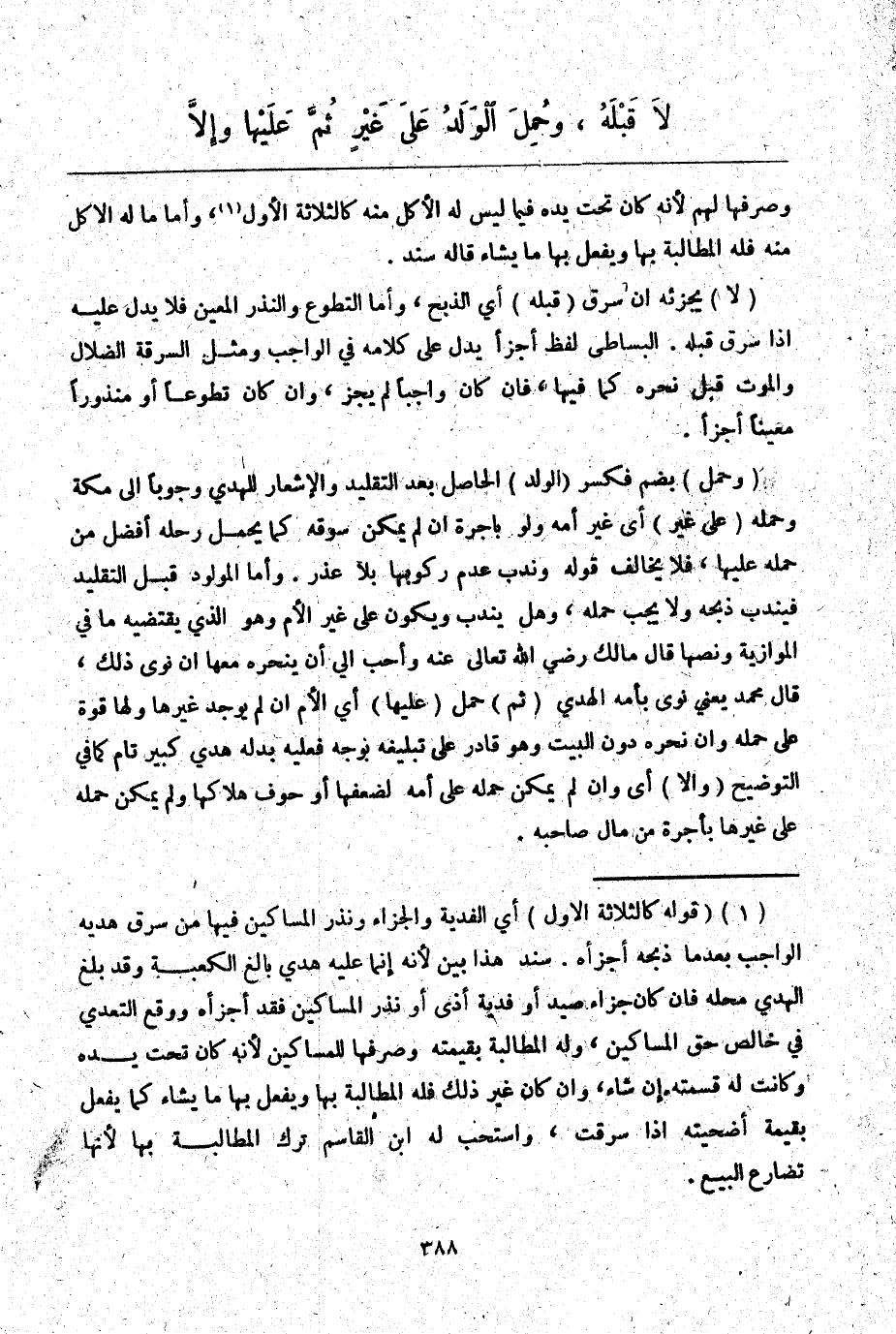 (لَا) يُجْزِئُهُ إنْ سُرِقَ (قَبْلَهُ) أَيْ: الذَّبْحِ، وَأَمَّا التَّطَوُّعُ وَالنَّذْرُ الْمُعَيَّنُ فَلَا يَدُلُّ عَلَيْهِ إذَا سُرِقَ قَبْلَهُ. الْبِسَاطِيُّ لَفْظُ أَجْزَأَ يَدُلُّ عَلَى كَلَامِهِ فِي الْوَاجِبِ وَمِثْلُ السَّرِقَةِ الضَّلَالُ وَالْمَوْتُ قَبْلَ نَحْرِهِ كَمَا فِيهَا، فَإِنْ كَانَ وَاجِبًا لَمْ يُجْزِ، وَإِنْ كَانَ تَطَوُّعًا أَوْ مَنْذُورًا مُعَيَّنًا أَجْزَأَ. (وَحُمِلَ) بِضَمٍّ فَكَسْرٍ (الْوَلَدُ) الْحَاصِلُ بَعْدَ التَّقْلِيدِ وَالْإِشْعَارِ لِلْهَدْيِ وُجُوبًا إلَى مَكَّةَ وَحَمَلَهُ (عَلَى غَيْرٍ) أَيْ: غَيْرِ أُمِّهِ وَلَوْ بِأُجْرَةٍ إنْ لَمْ يُمْكِنْ سَوْقُهُ كَمَا يُحْمَلُ رَحْلُهُ أَفْضَلُ مِنْ حَمْلِهِ عَلَيْهَا، فَلَا يُخَالِفُ قَوْلُهُ وَنُدِبَ عَدَمُ رُكُوبِهَا بِلَا عُذْرٍ وَأَمَّا الْمَوْلُودُ قَبْلَ التَّقْلِيدِ فَيُنْدَبُ ذَبْحُهُ وَلَا يَجِبُ حَمْلُهُ، وَهَلْ يُنْدَبُ وَيَكُونُ عَلَى غَيْرِ الْأُمِّ وَهُوَ الَّذِي يَقْتَضِيهِ مَا فِي الْمَوَّازِيَّةِ وَنَصُّهَا قَالَ مَالِكٌ - رَضِيَ اللَّهُ تَعَالَى عَنْهُ -: وَأَحَبُّ إلَيَّ أَنْ يَنْحَرَهُ مَعَهَا إنْ نَوَى ذَلِكَ، قَالَ مُحَمَّدٌ يَعْنِي نَوَى بِأُمِّهِ الْهَدْيَ (ثُمَّ) حَمَلَ (عَلَيْهَا) أَيْ الْأُمِّ إنْ لَمْ يُوجَدْ غَيْرُهَا وَلَهَا قُوَّةٌ عَلَى حَمْلِهِ وَإِنْ نَحَرَهُ دُونَ الْبَيْتِ وَهُوَ قَادِرٌ عَلَى تَبْلِيغِهِ بِوَجْهٍ فَعَلَيْهِ بَدَلُهُ هَدْيٌ كَبِيرٌ تَامٌّ كَمَا فِي التَّوْضِيحِ (وَإِلَّا) أَيْ: وَإِنْ لَمْ يُمْكِنْ حَمْلُهُ عَلَى أُمِّهِ لِضَعْفِهَا أَوْ خَوْفِ هَلَاكِهَا وَلَمْ يُمْكِنْ حَمْلُهُ عَلَى غَيْرِهَا بِأُجْرَةٍ مِنْ مَالِ صَاحِبِهِ.