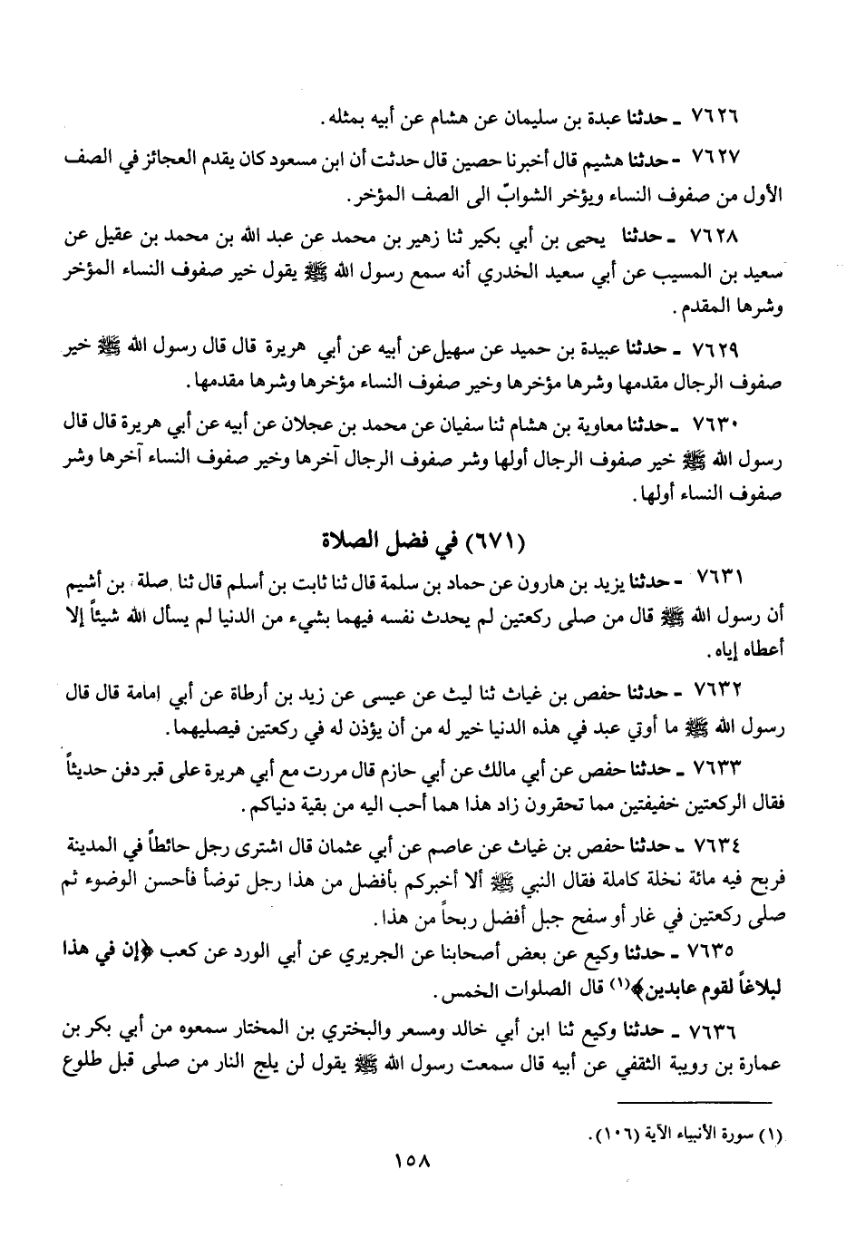 7635 - حَدَّثَنَا وَكِيعٌ، عَنْ بَعْضِ أَصْحَابِنَا، عَنِ الْجُرَيْرِيِّ، عَنْ أَبِي الْوَرْدِ، عَنْ كَعْبٍ: {§إِنَّ فِي هَذَا لَبَلَاغًا لِقَوْمٍ عَابِدِينَ} [الأنبياء: 106]، قَالَ: «الصَّلَوَاتُ الْخَمْسُ»