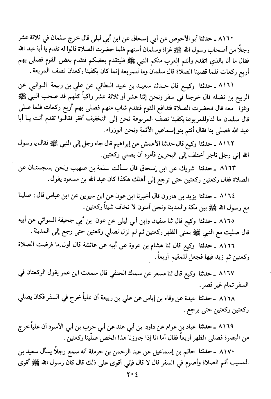 8163 - حَدَّثَنَا شَرِيكٌ، عَنِ ابْنِ إِسْحَاقَ، قَالَ: سَأَلْتُ سَلَمَةَ بْنَ صُهَيْبٍ وَنَحْنُ بِسِجِسْتَانَ عَنِ الصَّلَاةِ، فَقَالَ: «§رَكْعَتَيْنِ رَكْعَتَيْنِ حَتَّى تَرْجِعَ إِلَى أَهْلِكَ»، هَكَذَا كَانَ عَبْدُ اللَّهِ بْنُ مَسْعُودٍ يَقُولُ