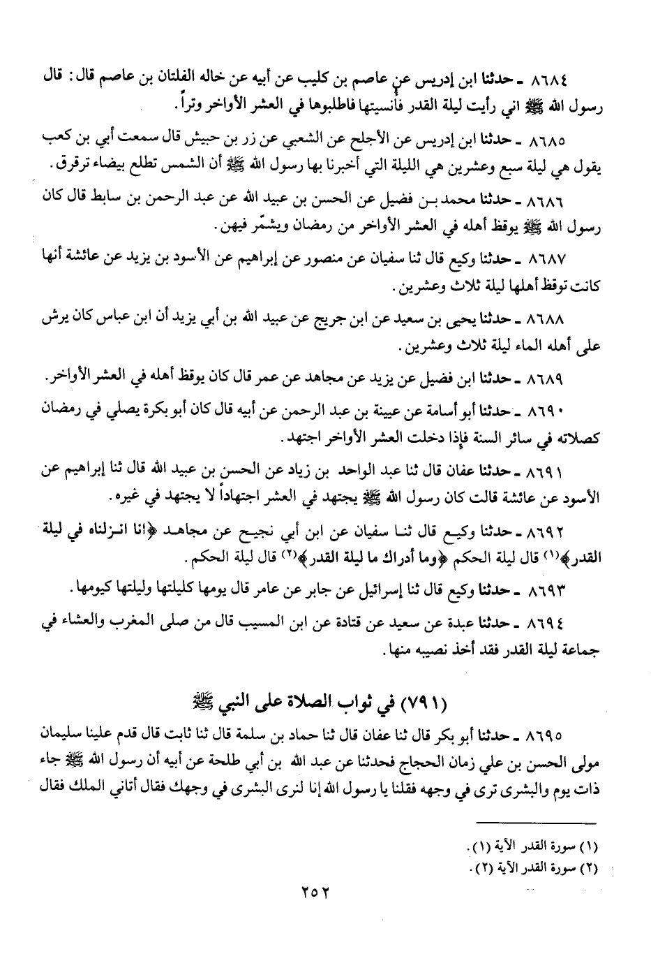 8684 - حَدَّثَنَا ابْنُ إِدْرِيسَ، عَنْ عَاصِمِ بْنِ كُلَيْبٍ، عَنْ أَبِيهِ، عَنْ خَالِهِ الْفَلَتَانِ بْنِ عَاصِمٍ، قَالَ: قَالَ رَسُولُ اللَّهِ صَلَّى اللهُ عَلَيْهِ وَسَلَّمَ: «إِنِّي §رَأَيْتُ لَيْلَةَ الْقَدْرِ فَأُنْسِيتُهَا، فَاطْلُبُوهَا فِي الْعَشْرِ الْأَوَاخِرِ وِتْرًا»