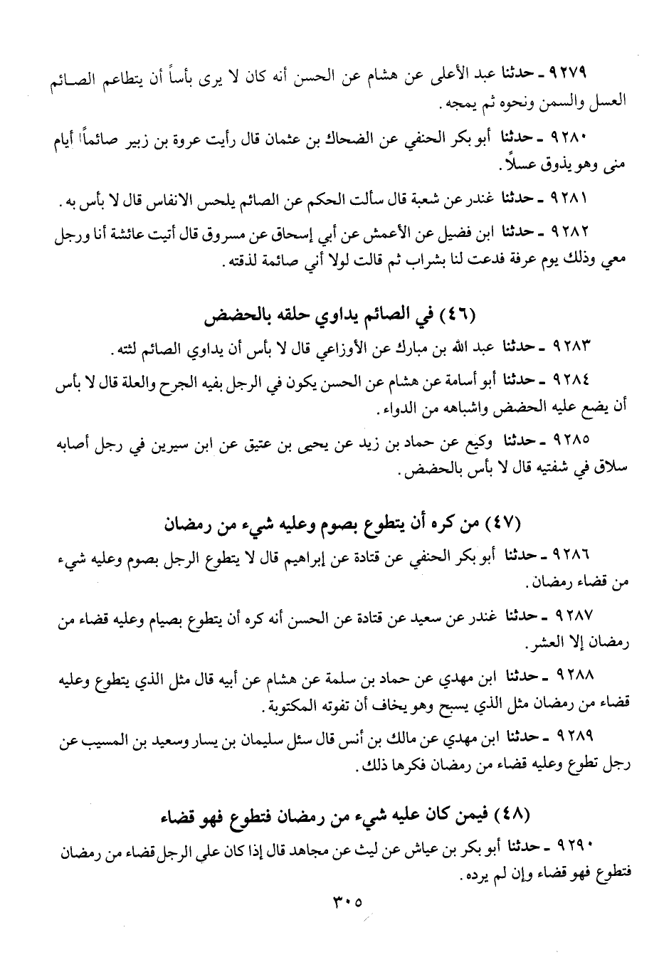 9279 - حَدَّثَنَا عَبْدُ الْأَعْلَى، عَنْ هِشَامٍ، عَنِ الْحَسَنِ، «أَنَّهُ كَانَ §لَا يَرَى بَأْسًا أَنْ يَتَطَاعَمَ الصَّائِمُ الْعَسَلَ وَالسَّمْنَ وَنَحْوَهُ، ثُمَّ يَمُجَّهُ»