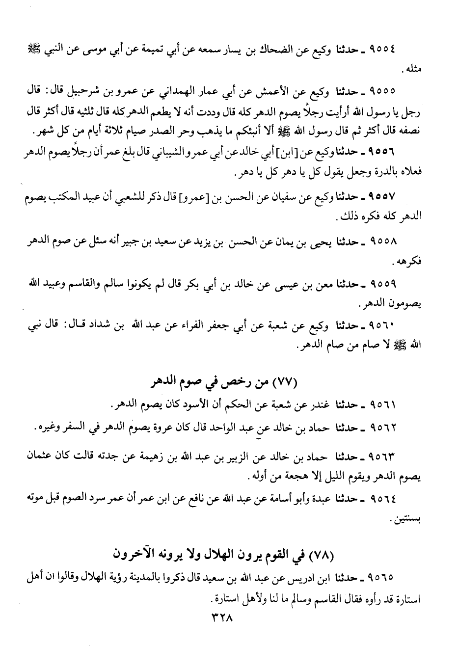 9559 - حَدَّثَنَا مَعْنُ بْنُ عِيسَى، عَنْ خَالِدِ بْنِ أَبِي بَكْرٍ، قَالَ: «§لَمْ يَكُونُوا سَالِمٌ، وَالْقَاسِمُ، وَعُبَيْدُ اللَّهِ يَصُومُونَ الدَّهْرَ»