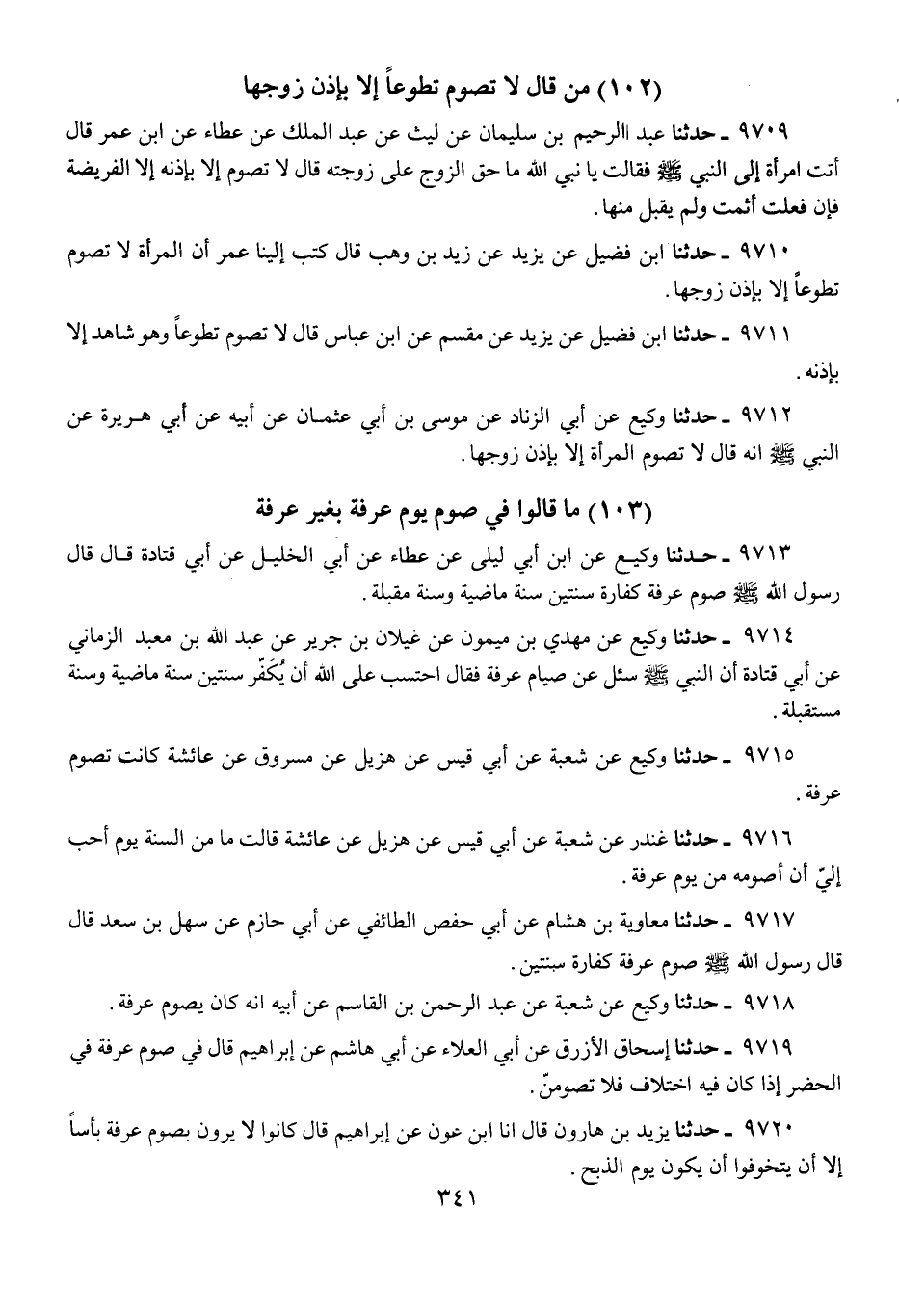 9718 - حَدَّثَنَا وَكِيعٌ، عَنْ شُعْبَةَ، عَنْ عَبْدِ الرَّحْمَنِ بْنِ الْقَاسِمِ، عَنْ أَبِيهِ، «أَنَّهُ كَانَ §يَصُومُ عَرَفَةَ»