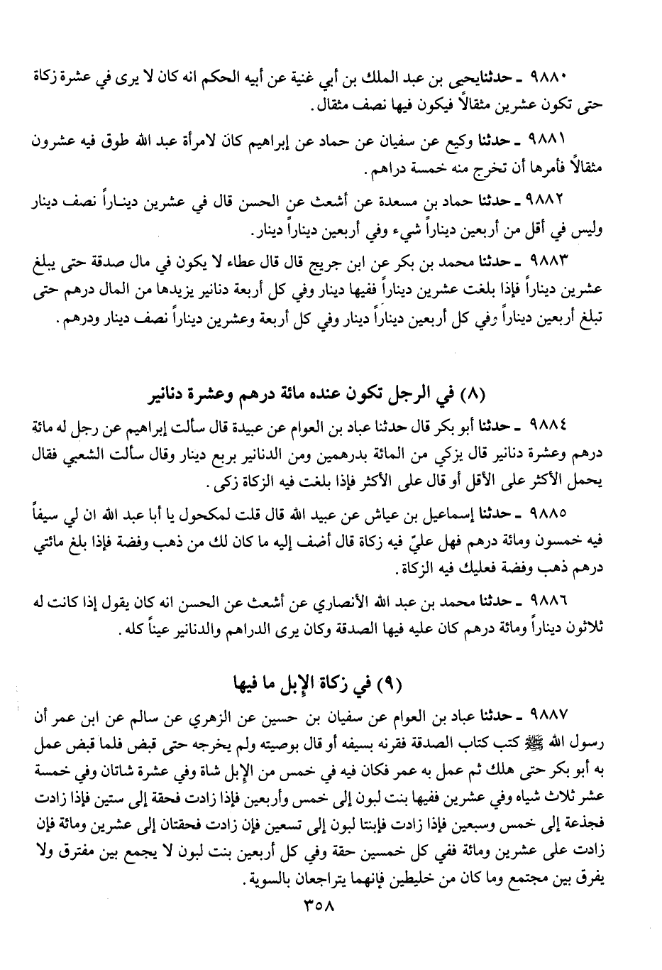 9880 - حَدَّثَنَا يَحْيَى بْنُ عَبْدِ الْمَلِكِ بْنِ أَبِي غَنِيَّةَ، عَنْ أَبِيهِ، عَنِ الْحَكَمِ، أَنَّهُ كَانَ «§لَا يَرَى فِي عَشَرَةِ دَنَانِيرَ زَكَاةً حَتَّى تَكُونَ عِشْرِينَ مِثْقَالًا، فَيَكُونَ فِيهَا نِصْفُ مِثْقَالٍ»