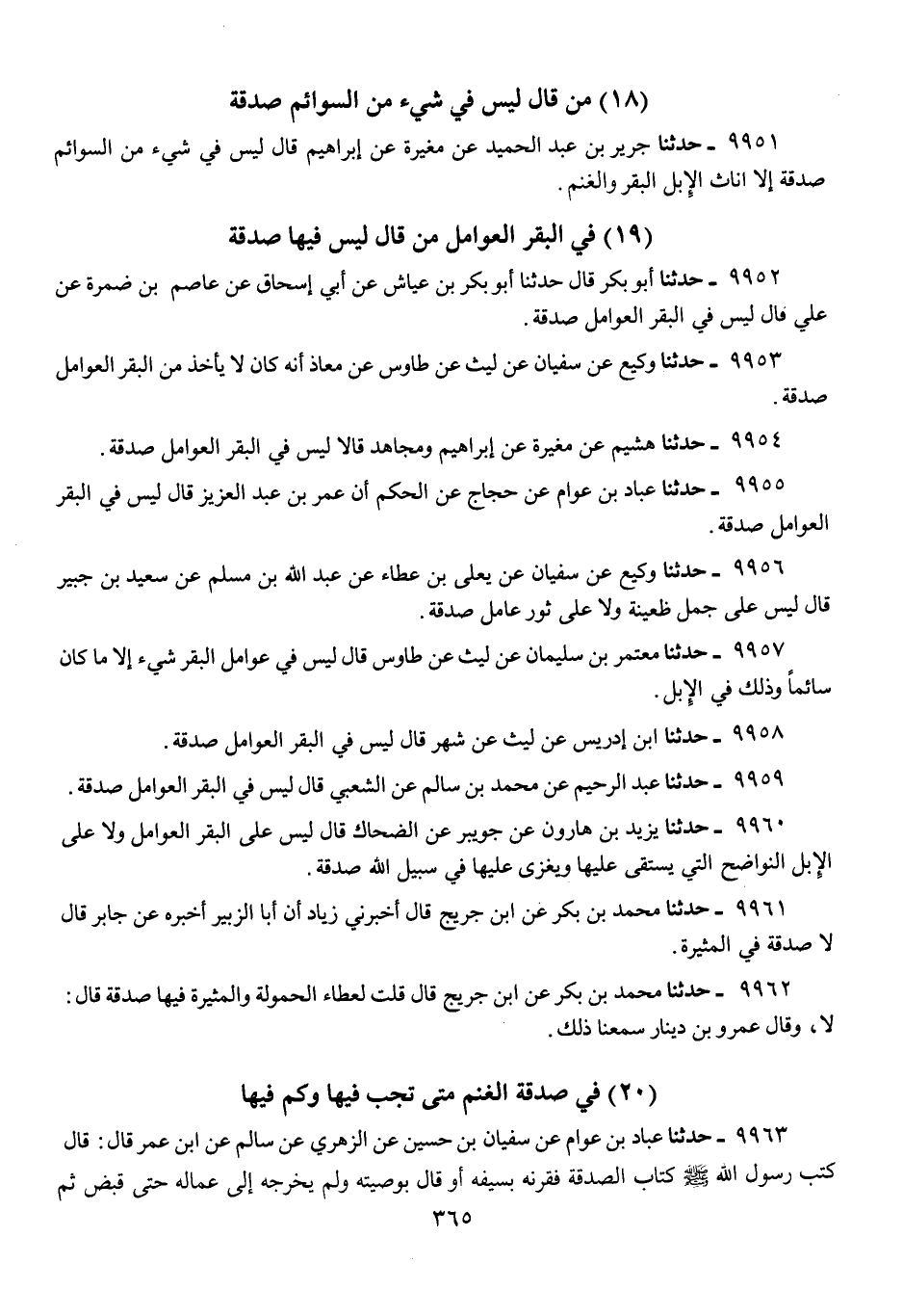 9954 - حَدَّثَنَا هُشَيْمٌ، عَنْ مُغِيرَةَ، عَنْ إِبْرَاهِيمَ، وَمُجَاهِدٍ قَالَا: «§لَيْسَ فِي الْبَقَرِ الْعَوَامِلِ صَدَقَةٌ»