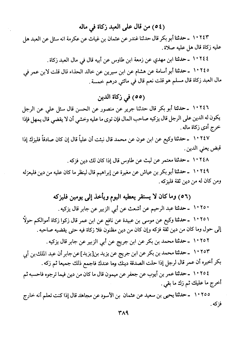 10243 - حَدَّثَنَا أَبُو بَكْرٍ قَالَ: حَدَّثَنَا غُنْدَرٌ، عَنْ عُثْمَانَ بْنِ غِيَاثٍ، عَنْ عِكْرِمَةَ، أَنَّهُ سُئِلَ عَنْ §الْعَبْدِ هَلْ عَلَيْهِ زَكَاةٌ؟ قَالَ: «هَلْ عَلَيْهِ صَلَاةٌ؟»