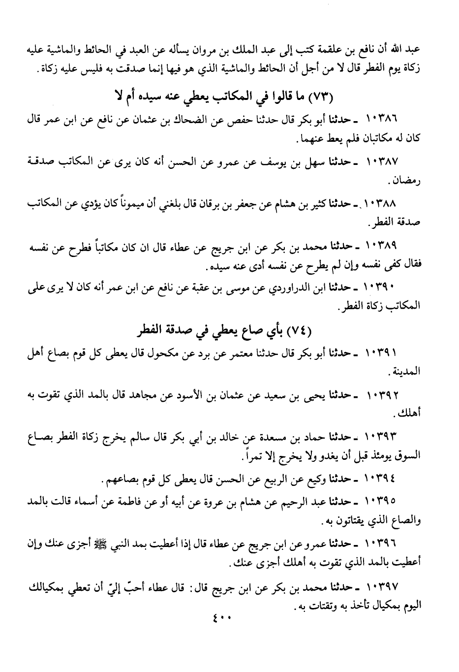 10387 - حَدَّثَنَا سَهْلُ بْنُ يُوسُفَ، عَنْ عَمْرٍو، عَنِ الْحَسَنِ، «أَنَّهُ كَانَ يَرَى §عَنِ الْمُكَاتَبِ صَدَقَةَ رَمَضَانَ»