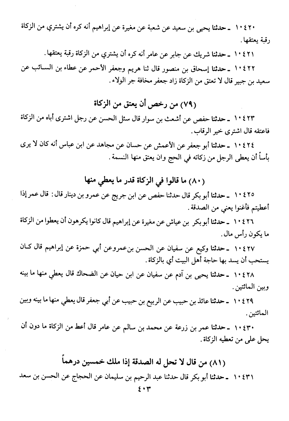 10426 - حَدَّثَنَا أَبُو بَكْرِ بْنُ عَيَّاشٍ، عَنْ مُغِيرَةَ، عَنْ إِبْرَاهِيمَ، قَالَ: كَانُوا «§يَكْرَهُونَ أَنْ يُعْطُوا مِنَ الزَّكَاةِ مَا يَكُونُ رَأْسَ مَالٍ»