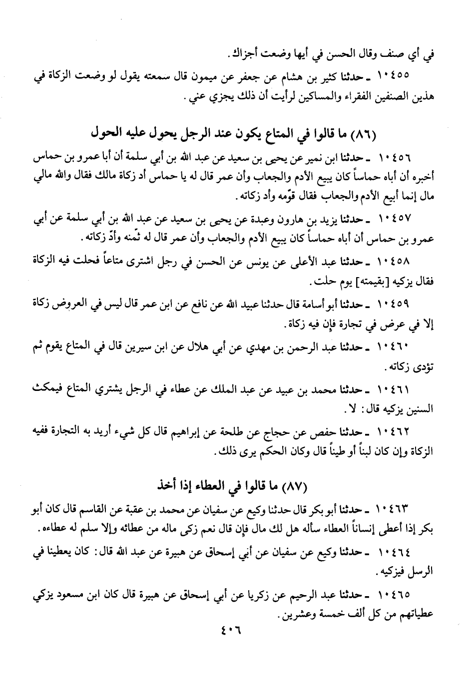 10465 - حَدَّثَنَا عَبْدُ الرَّحِيمِ، عَنْ زَكَرِيَّا، عَنْ أَبِي إِسْحَاقَ، عَنْ هُبَيْرَةَ، قَالَ: كَانَ ابْنُ مَسْعُودٍ «§يُزَكِّي عَطِيَّاتِهِمْ مِنْ كُلِّ أَلْفٍ خَمْسَةً وَعِشْرِينَ»