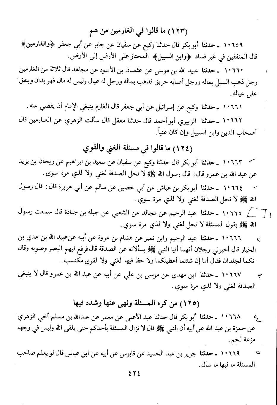 10662 - حَدَّثَنَا الزُّبَيْرِيُّ أَبُو أَحْمَدَ، قَالَ: حَدَّثَنَا مَعْقِلٌ، قَالَ: سَأَلْتُ الزُّهْرِيَّ عَنْ §الْغَارِمِينَ، قَالَ: «أَصْحَابُ الدَّيْنِ، وَابْنُ السَّبِيلِ، وَإِنْ كَانَ غَنِيًّا»