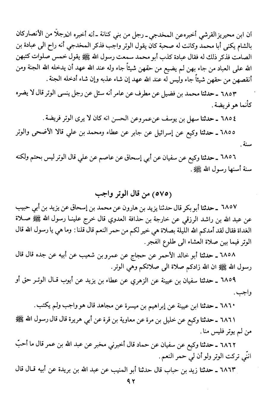6854 - حَدَّثَنَا سَهْلُ بْنُ يُوسُفَ، عَنْ عَمْرٍو، عَنِ الْحَسَنِ، «أَنَّهُ كَانَ §لَا يَرَى الْوَتْرَ فَرِيضَةً»