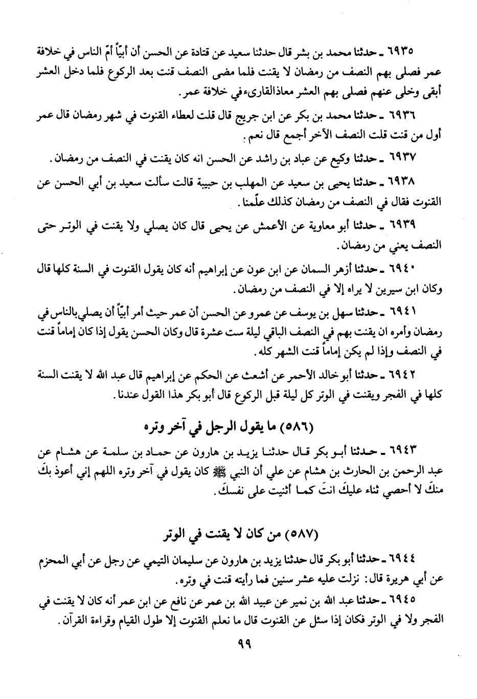 §مَنْ كَانَ لَا يَقْنُتُ فِي الْوَتْرِ