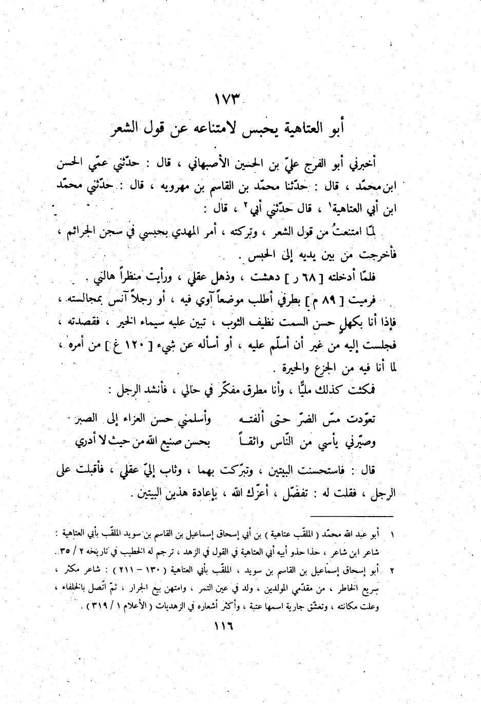 أَبُو الْعَتَاهِيَة يحبس لامتناعه عَن قَول الشّعْر