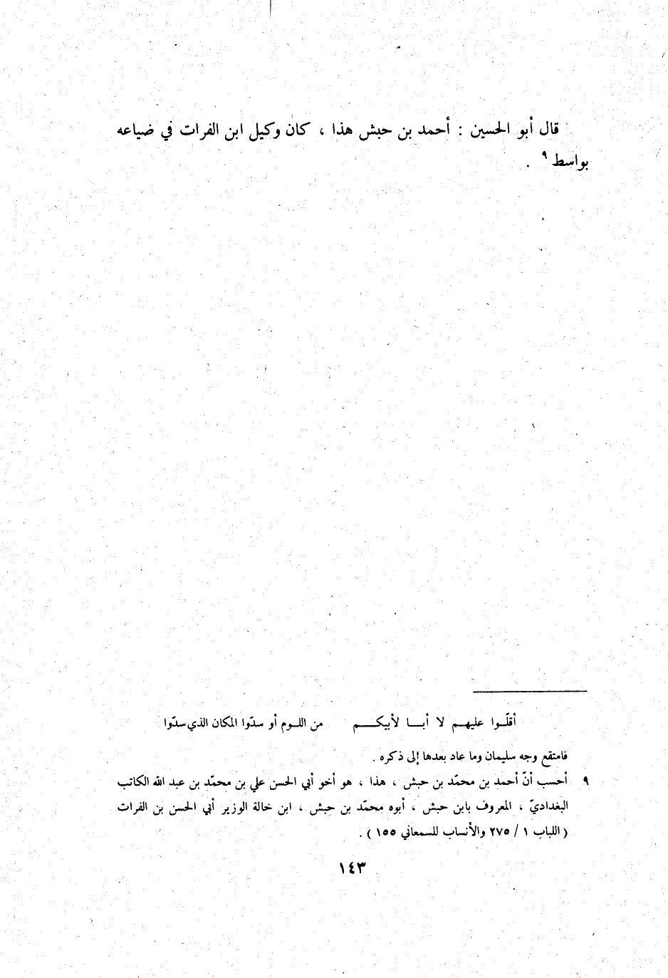 قَالَ أَبُو الْحُسَيْن: أَحْمد بن حبش هَذَا، كَانَ وَكيل ابْن الْفُرَات فِي ضيَاعه بواسط.