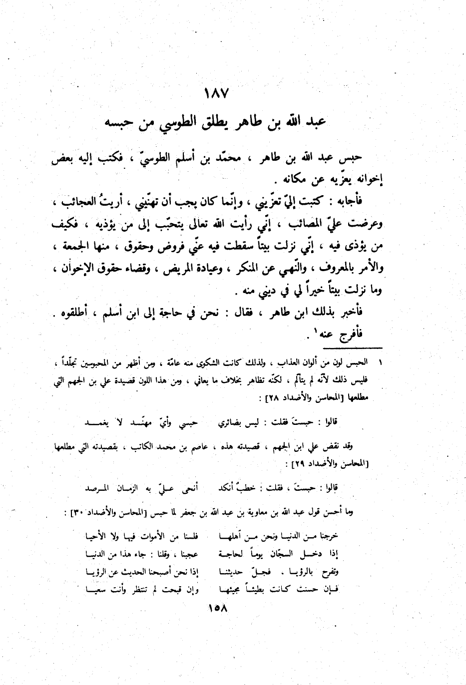عبد الله بن طَاهِر يُطلق الطوسي من حَبسه