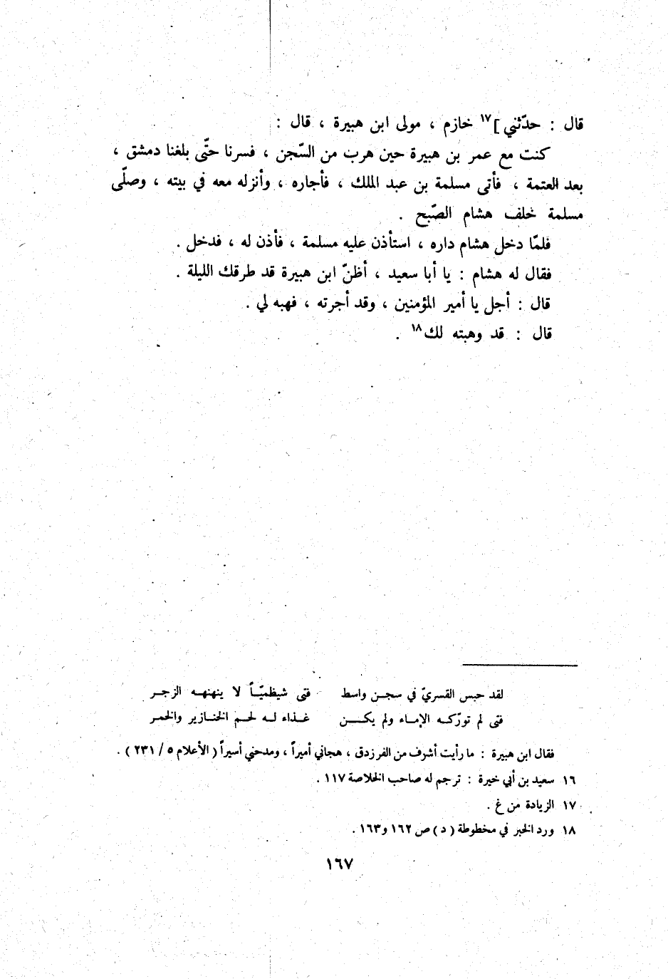 فَقَالَ لَهُ هِشَام: يَا أَبَا سعيد، أَظن ابْن هُبَيْرَة قد طرقك اللَّيْلَة.