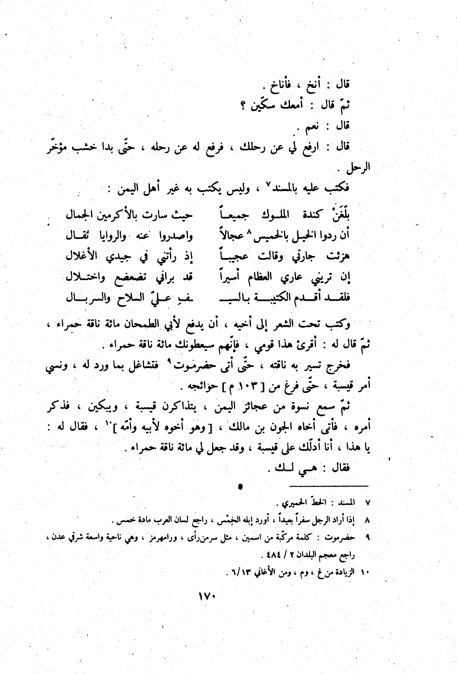 فَخرج تسير بِهِ نَاقَته، حَتَّى أَتَى حَضرمَوْت، فتشاغل بِمَا ورد لَهُ، وَنسي أَمر قيسبة، حَتَّى فرغ من حَوَائِجه.