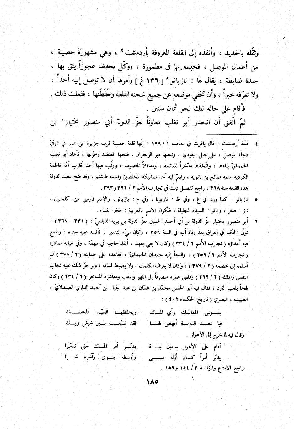 ثمَّ اتّفق أَن انحدر أَبُو تغلب معاونا لعز الدولة أبي مَنْصُور بختيار بن