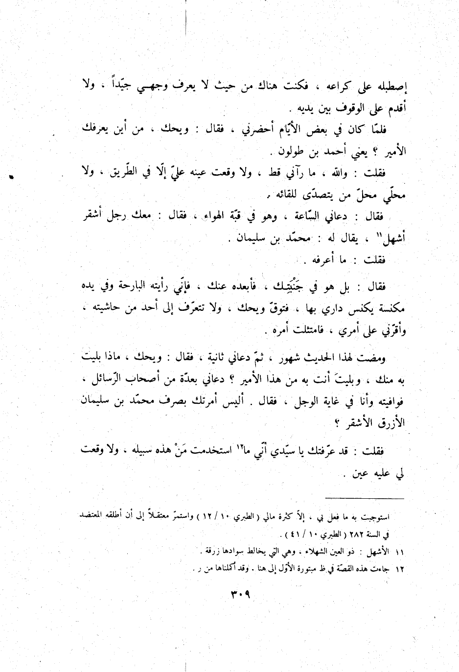 وَمَضَت لهَذَا الحَدِيث شهور، ثمَّ دَعَاني ثَانِيَة، فَقَالَ: وَيحك، مَاذَا بليت بِهِ مِنْك، وبليت أَنْت بِهِ من هَذَا الْأَمِير؟ دَعَاني بعدة من أَصْحَاب الرسائل، فوافيته وَأَنا فِي غَايَة الوجل، فَقَالَ: أَلَيْسَ أَمرتك بِصَرْف مُحَمَّد بن سُلَيْمَان الْأَزْرَق الْأَشْقَر؟ فَقلت: قد عرفتك يَا سَيِّدي أَنِّي مَا استخدمت من هَذِه سَبيله، وَلَا وَقعت لي عَلَيْهِ عين.