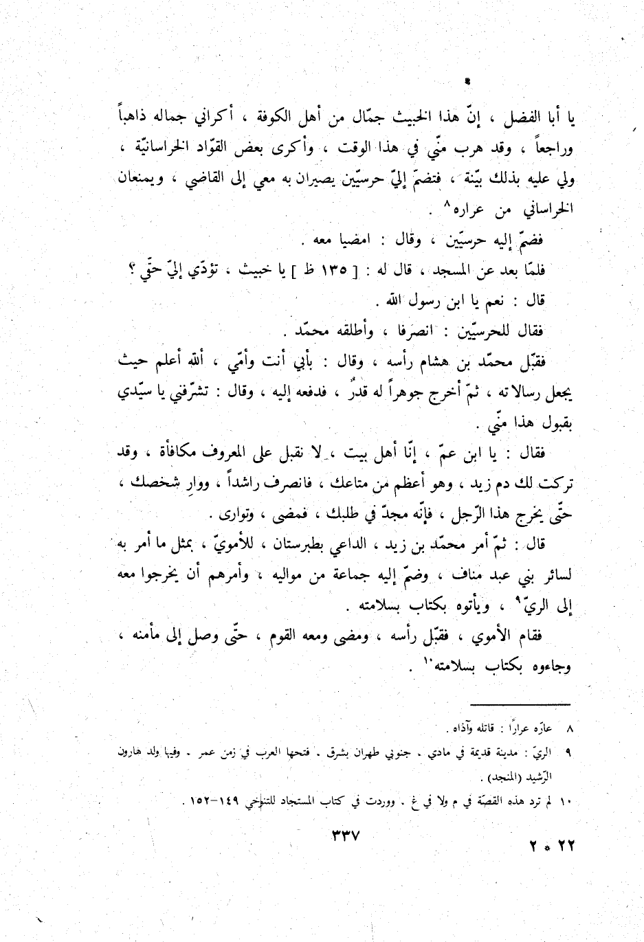 قَالَ: ثمَّ أَمر مُحَمَّد بن زيد، الدَّاعِي بطبرستان، للأموي، بِمثل مَا أَمر بِهِ لسَائِر بني عبد منَاف، وَضم إِلَيْهِ جمَاعَة من موَالِيه، وَأمرهمْ أَن يخرجُوا مَعَه إِلَى الرّيّ، ويأتوه بِكِتَاب بسلامته.