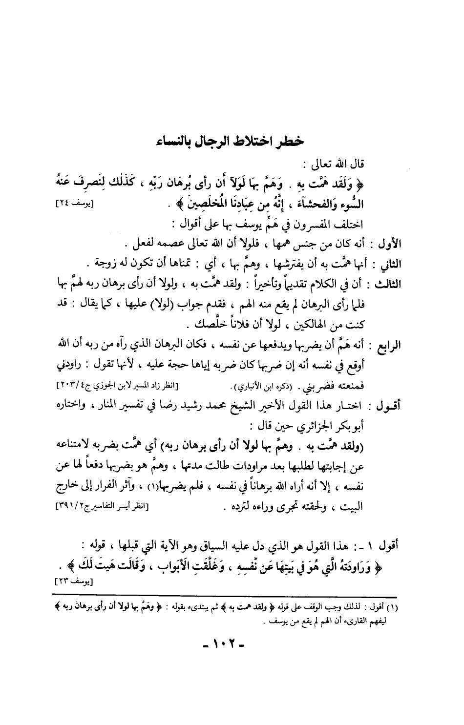 3 - ودليل آخر على تفسير الهمِّ بالضرب: هو همُّ يوسف بالهرب منها تخلصًا منها حينما حاولت ضربه، وقد لحقته لتمسك به وتأخذه بقوة، وأمسكت بقميصه من الخلف فشقته، وذلك قوله تعالى:
