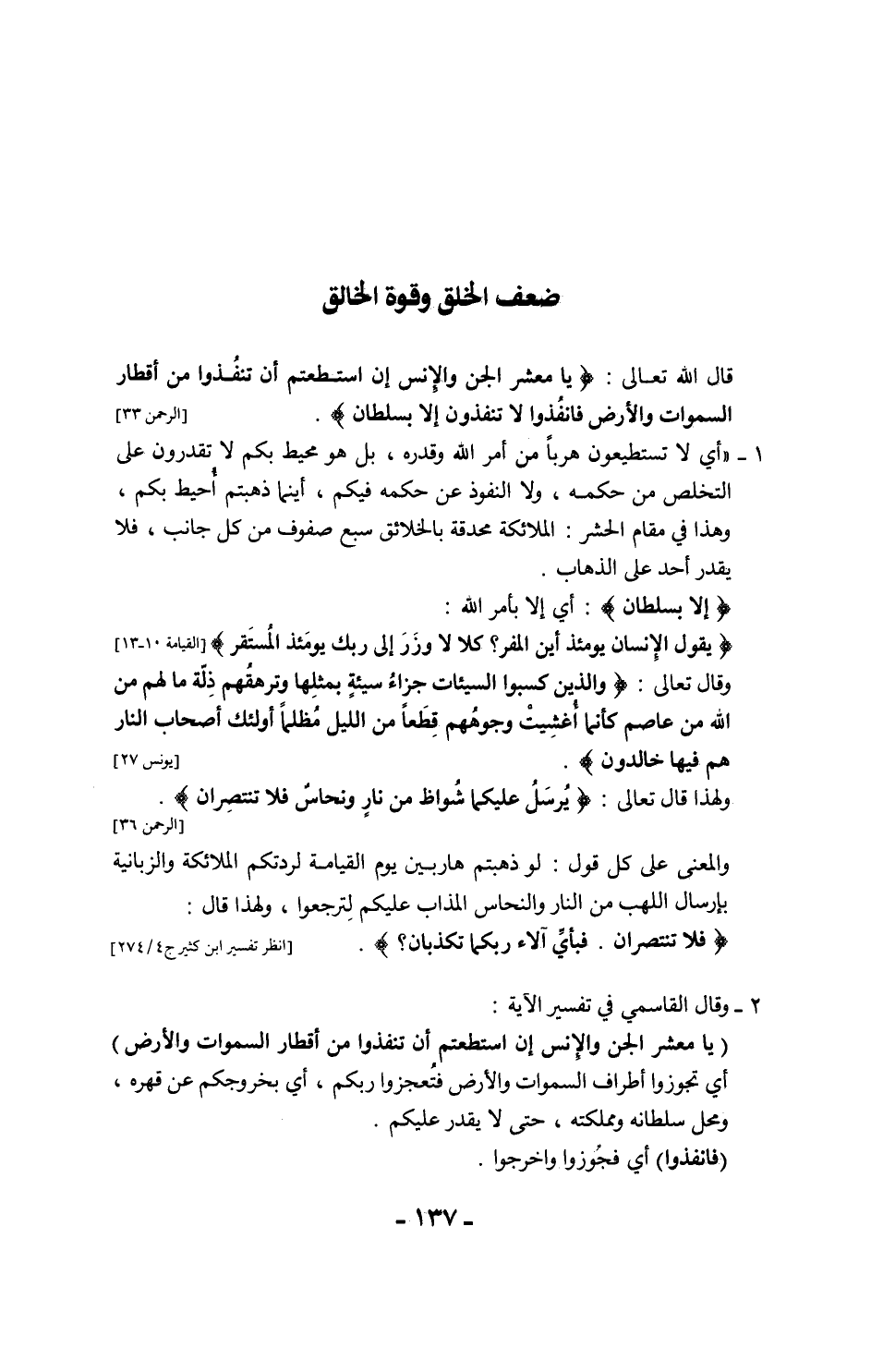 3 - ويقال معنى الآية: إن استطعتم أن تعلموا ما في السموات والأرض فاعلموه، ولن تعلموه إلا بسلطان، يعني البينة من الله تعالى.