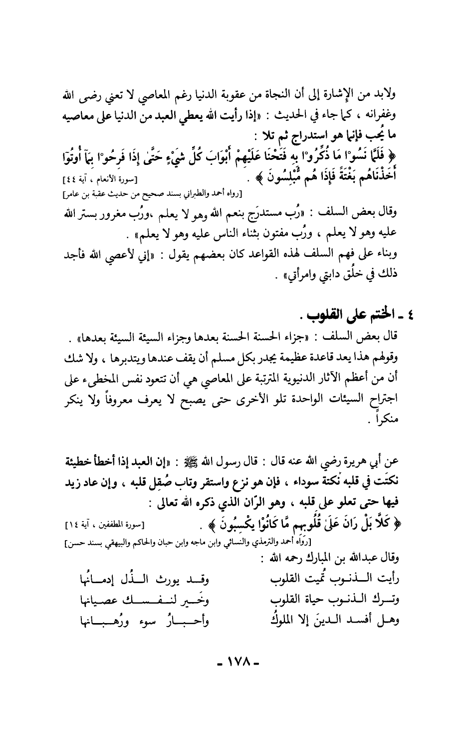 وهذا مثال لأحد الذنوب يضربه الرسول - صلى الله عليه وسلم - فيقول: "لَينتَهِيَن أقوام عن ودعهم الجمعات، أو ليَختِمَن الله على قلوبهم، ثم ليكونُّن مِن الغافلين". [رواه أحمد ومسلم]