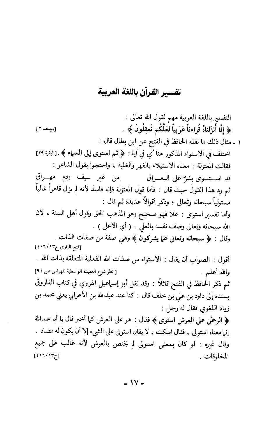 والعجيب أن الأشاعرة أخذوا عن المعتزلة تفسير استوى بمعنى استولى، وفشى هذا في بعض كتب التفسير والتوحيد وأقوال الناس، فأنكروا العلو لله -عَزَّ وَجَلَّ- كما دلت عليه الآيات والأحاديث الصحيحة وأقوال الصحابة والتابعين والأئمة المجتهدين، حتى خالفوا اللغة العربية التي نزل بها القرآن الكريم.