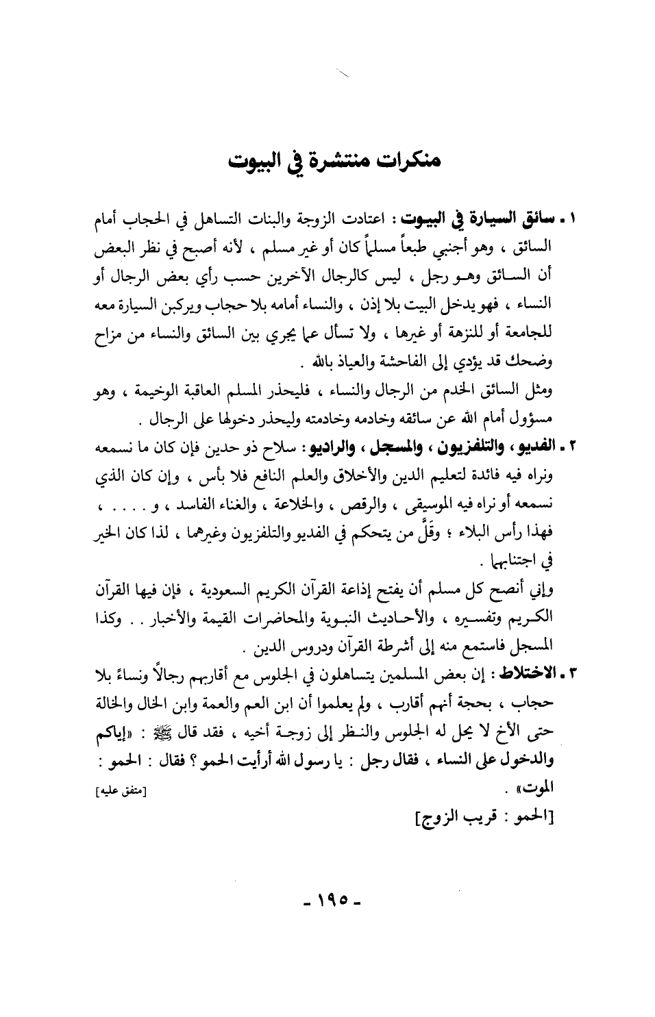 6 - السفر: بعض الناس يسافر بعائلاتهم في إجازة الصيف إلى أوربا، وسويسرا، وفرنسا وغيرها لمجرد النزهة، وربما دخلوا بعائلاتهم وبناتهم إلى أماكن اللهو والفساد، ويكون الرجل سببًا في وقوعهم في الفساد الأخلاقي أو غير ذلك.