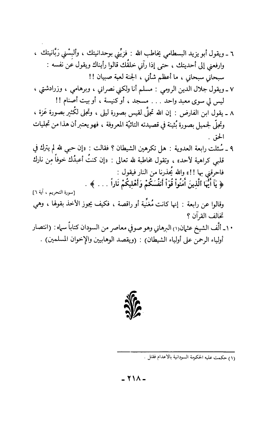 4 - يقول الشعراني عن سيده محمد الخضري: "أخبرني الشيخ أبو الفضل السرسي، أنه جاءهم يوم الجمعة، فسألوه الخطبة، فطلع على المنبر، وحمد الله وأثنى عليه وحده ثم قال: "وأشهد أن لا إله لكم إلا إبليس عليه الصلاة والسلام"، فقال الناس: كفر، فسل السيف ونزل وهرب الناس كلهم من الجامع، فجلس على المنبر إلى أذان العصر، وما تجرأ أحد أن يدخل الجامع، ثم جاء بعض أهالي البلاد المجاورة، فأخبر أهل كل بلدة أنه خطب عندهم وصلى فيهم، فعددنا له ذلك اليوم ثلاثين خطبة، هذا ونحن نراه جالسًا عندنا في الخطبة".