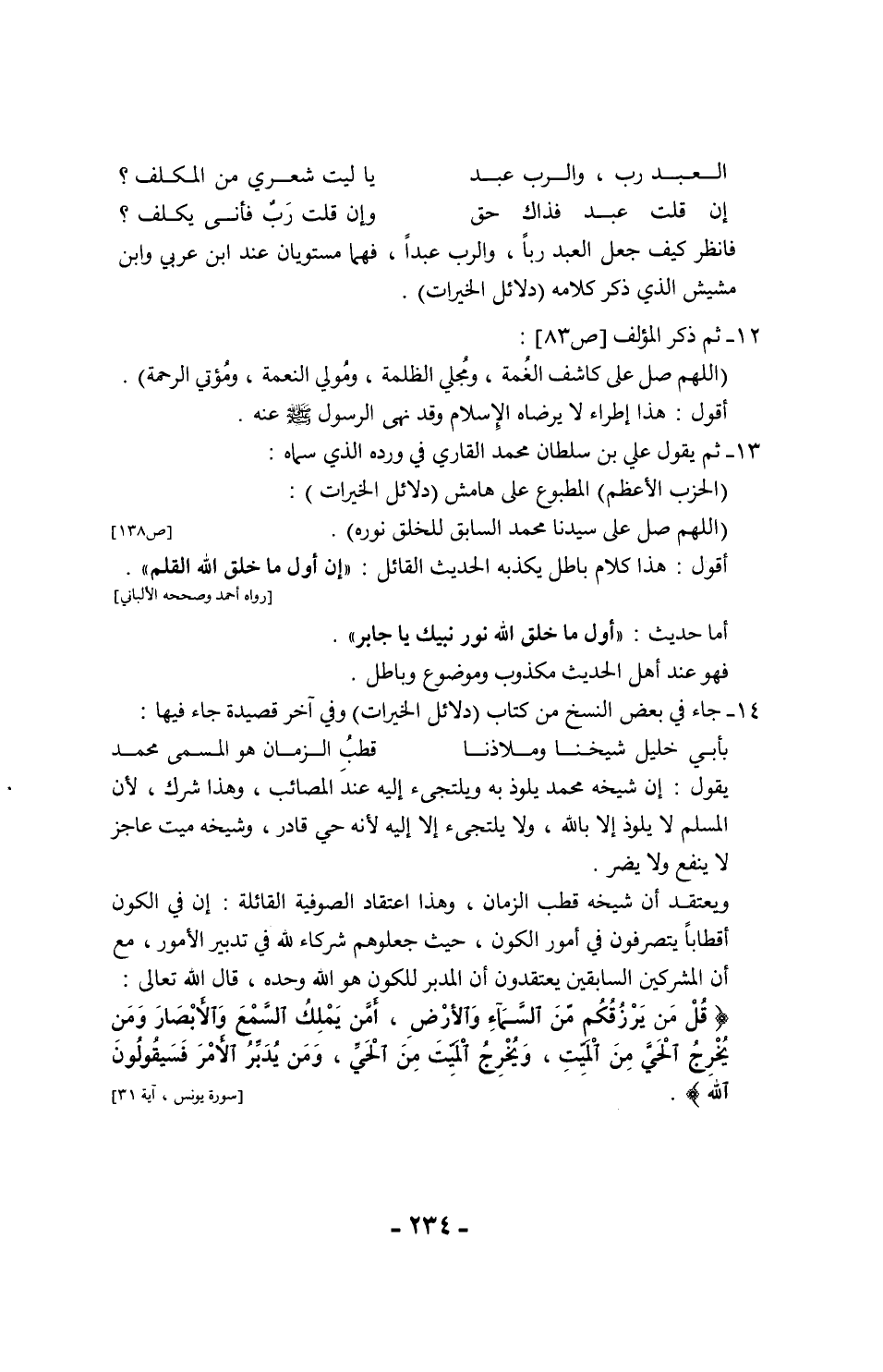16 - احذر يا أخي المسلم قراءة هذه الكتب، وعليك بقراءة كتاب (فضل الصلاة على النبي - صلى الله عليه وسلم -) للشيخ إسماعيل القاضي تحقيق المحدث الألباني، كما أن هناك كتابًا جيدًا اسمه (دليل الخيرات) لمؤلفه (خير الدين وانلي) جمع فيه صلوات وأدعية صحيحة يغنيك عن (دلائل الخيرات) الذي يوقعك في الشرك والآثام.