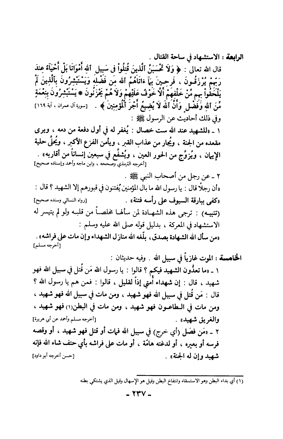 1 - ". . ومن مات في البطن فهو شهيد" [رواه مسدم وغيره، وتقدم بتمامه في "الخامسة"]