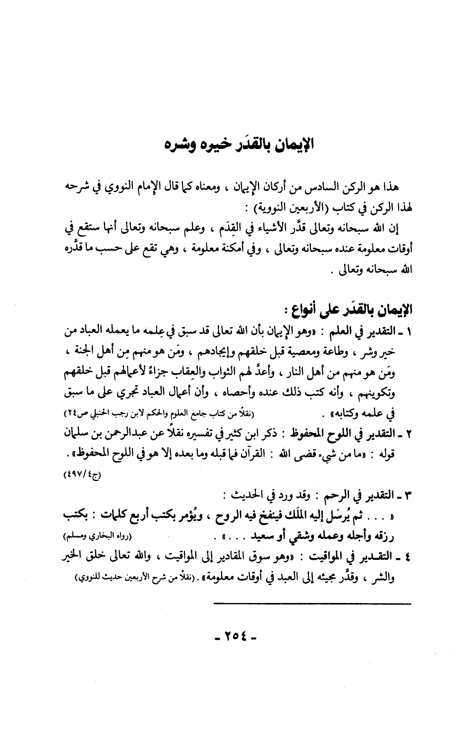 5 - عدم الفرح والحزن: قال الله تعالى: {مَا أَصَابَ مِنْ مُصِيبَةٍ فِي الْأَرْضِ وَلَا فِي أَنْفُسِكُمْ إِلا فِي كِتَابٍ مِنْ قَبْلِ أَنْ نَبْرَأَهَا إِنَّ ذَلِكَ عَلَى اللَّهِ يَسِيرٌ (22) لِكَيْلَا تَأْسَوْا عَلَى مَا فَاتَكُمْ وَلَا تَفْرَحُوا بِمَا آتَاكُمْ وَاللَّهُ لَا يُحِبُّ كُلَّ مُخْتَالٍ فَخُورٍ} (سوره الحديد 22)