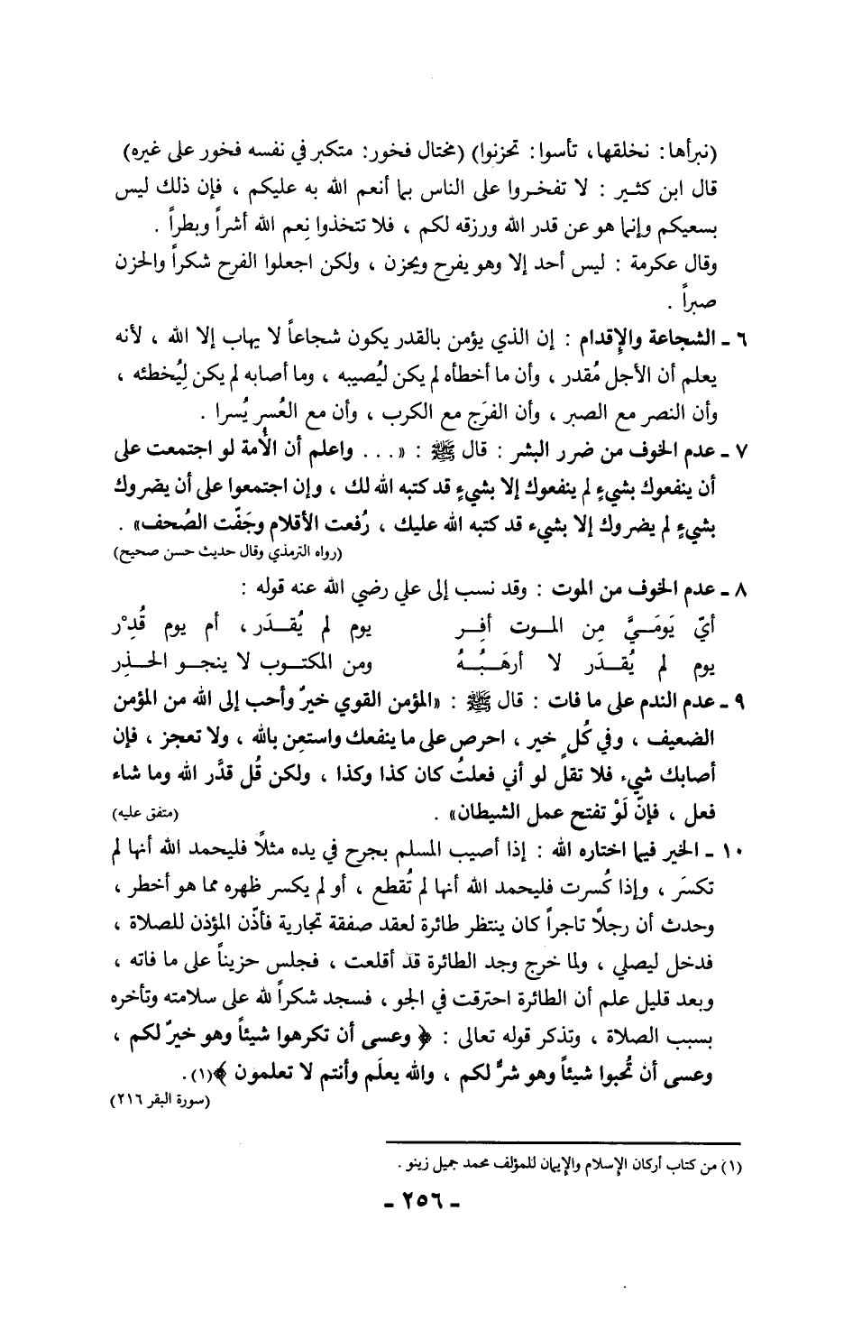 وقال - صلى الله عليه وسلم -: "احرص على ما ينفعك، واستعن بالله، ولا تعجز، فإن أصابك شيء فلا تقل لو أني فعلتُ كان كذا وكذا، ولكن قُل قدَّر الله وما شاء فعل، فإن لَوْ تفتح عمل الشيطان". (رواه مسلم)