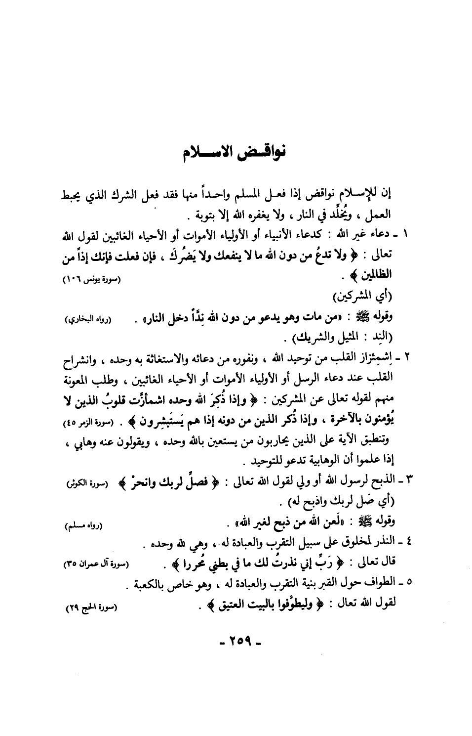 15 - الحكم بغير ما أنزل الله إذا اعتقد عدم صلاحيةِ حكم الإسلام أو أجاز الحكم بغيره لقوله تعالى: {وَمَنْ لَمْ يَحْكُمْ بِمَا أَنْزَلَ اللَّهُ فَأُولَئِكَ هُمُ الْكَافِرُونَ} (سورة المائدة 44)