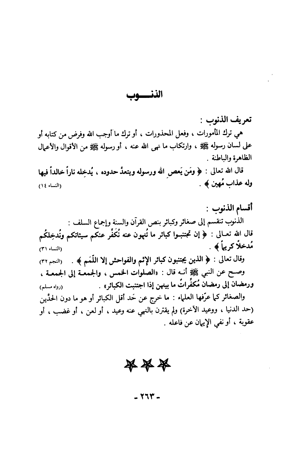 1 - قال الله تعالى: {إِنْ تَجْتَنِبُوا كَبَائِرَ مَا تُنْهَوْنَ عَنْهُ نُكَفِّرْ عَنْكُمْ سَيِّئَاتِكُمْ وَنُدْخِلْكُمْ مُدْخَلًا كَرِيمًا}. (سورة النساء 31)