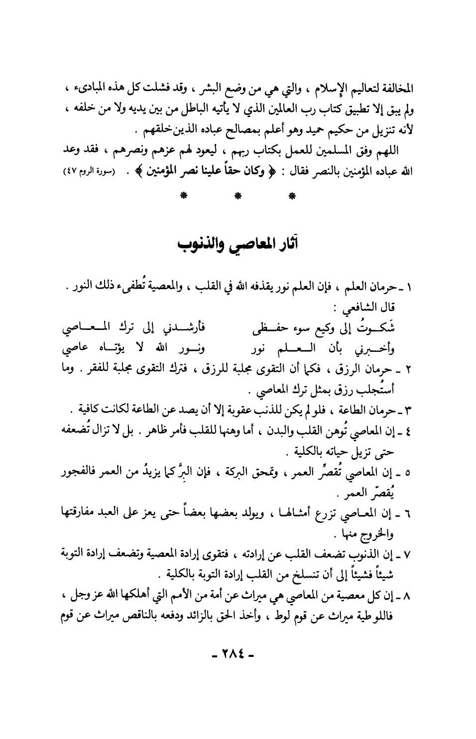وترك الذنوب حياة القلوب ... وخير لنفسك عصيانها
